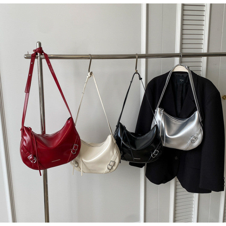 Ielgy Large-Capacity Commuter Underarm Bag Ladies Silver Trendy Fashion Niche Shoulder Bag Texture All-Match Mess