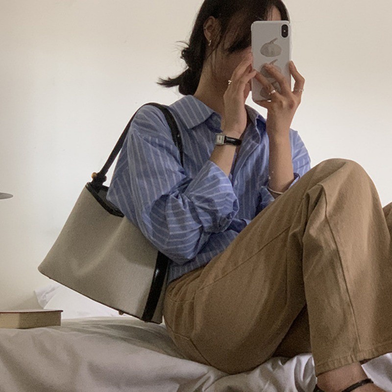 Ielgy Korean Version Niche Design Handbag Canvas Shoulder Armpit Bag Bucket Bag