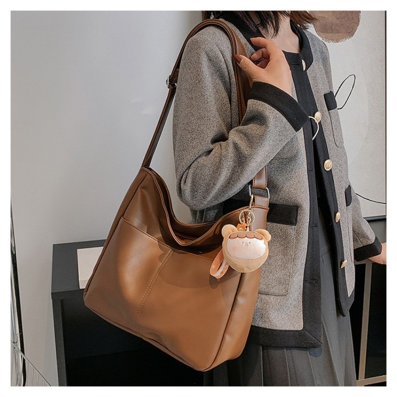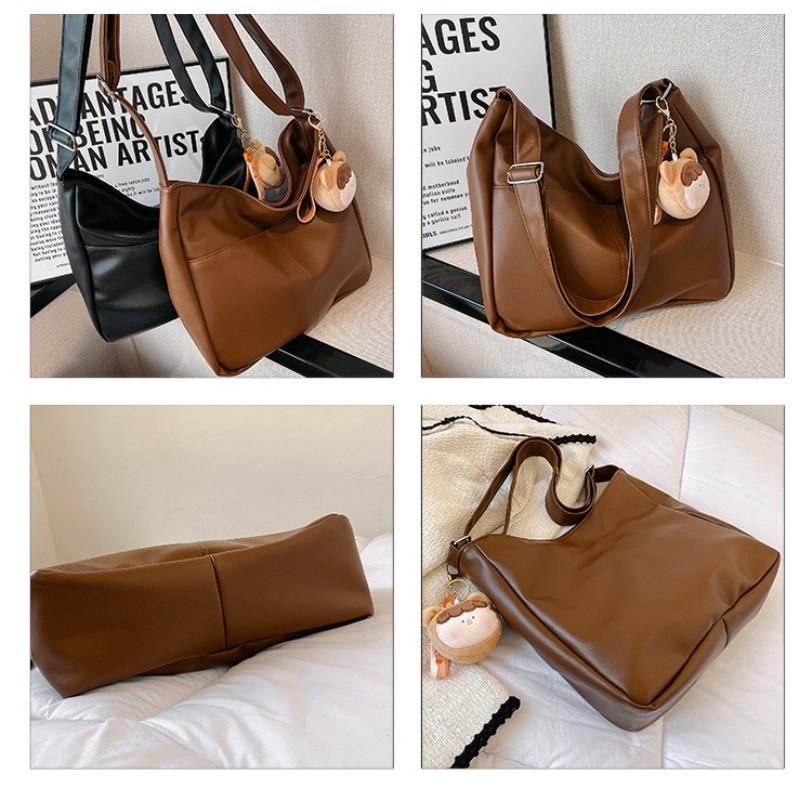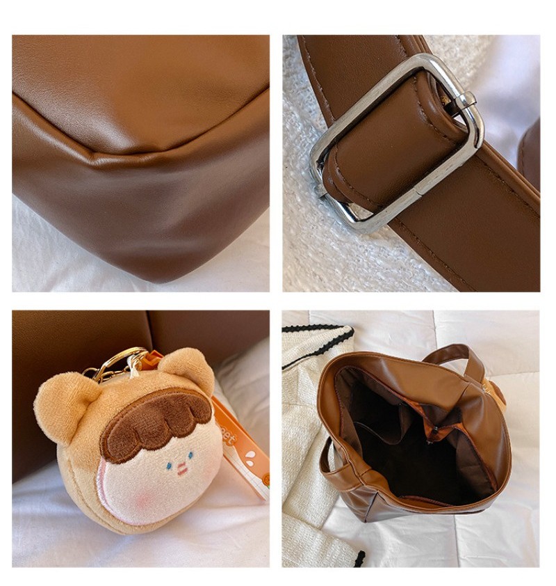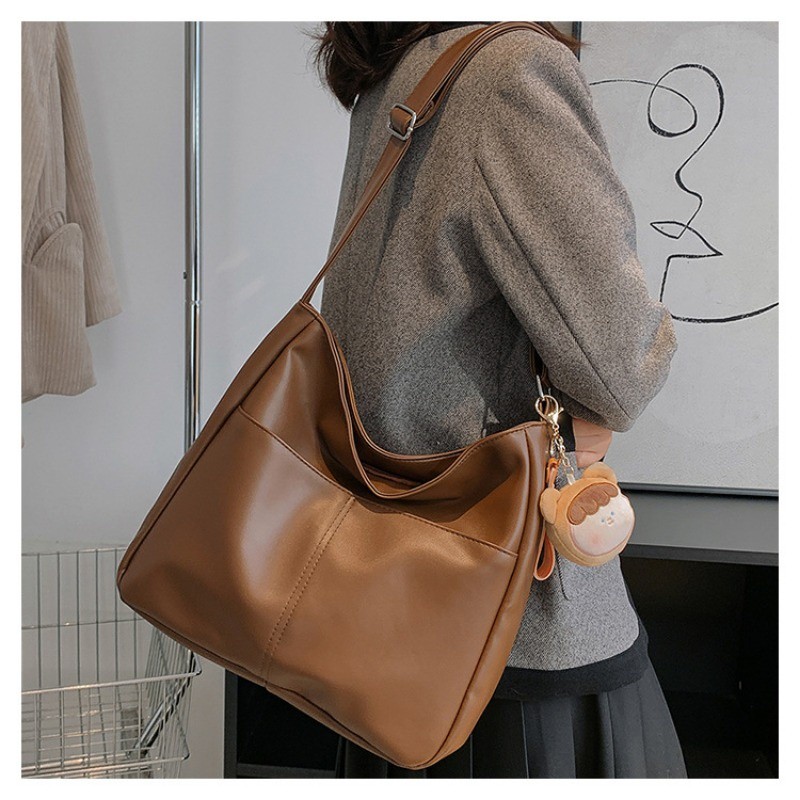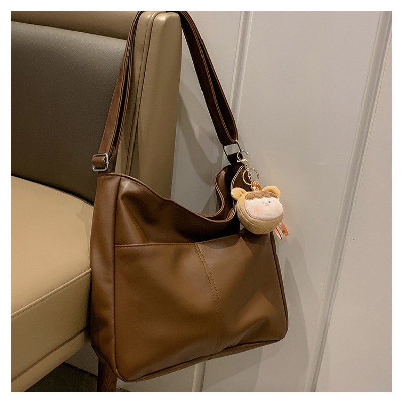 Ielgy Ladies Soft Leather Retro Bucket Bag Large Capacity Cross-body Shoulder Tote Bag (Free Pendant)