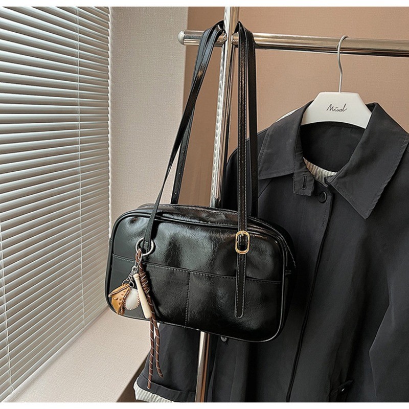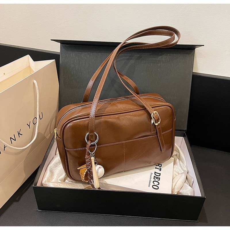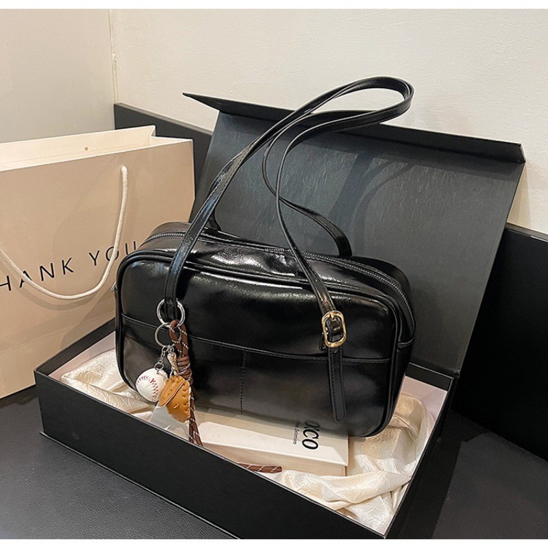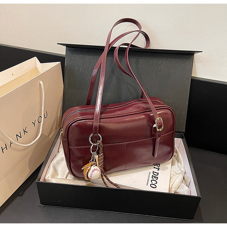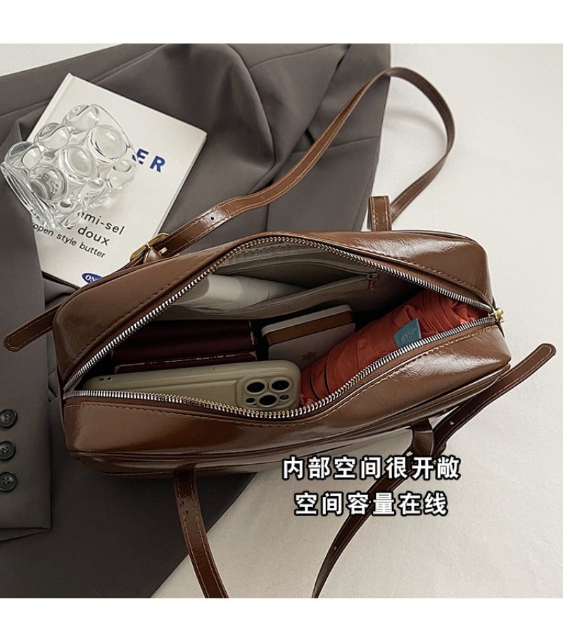Ielgy Retro All-Match Commuter Bag Portable Underarm Boston Bag Large Capacity One Shoulder