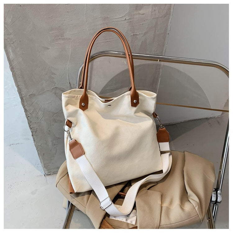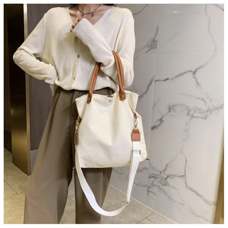 IELGY Woman's bag Casual Large capacity Official document Crossbody One shoulder Black Canvas White Large