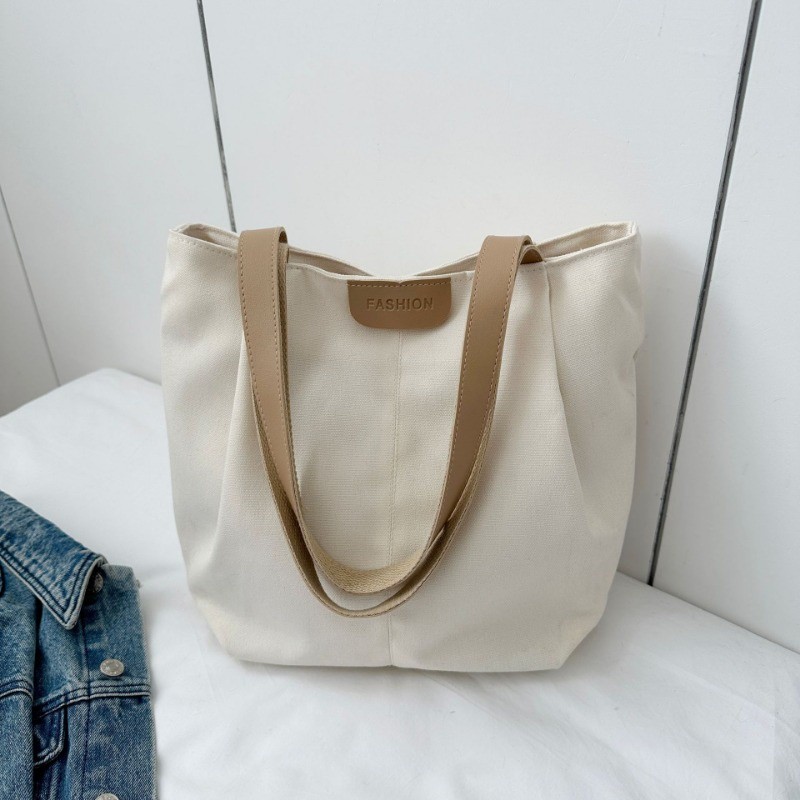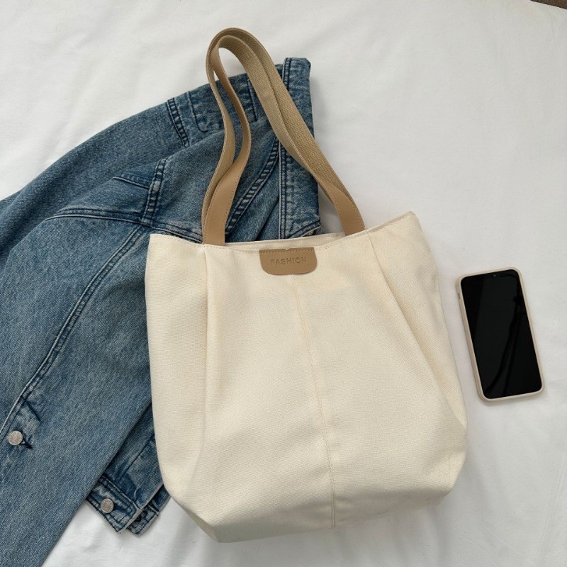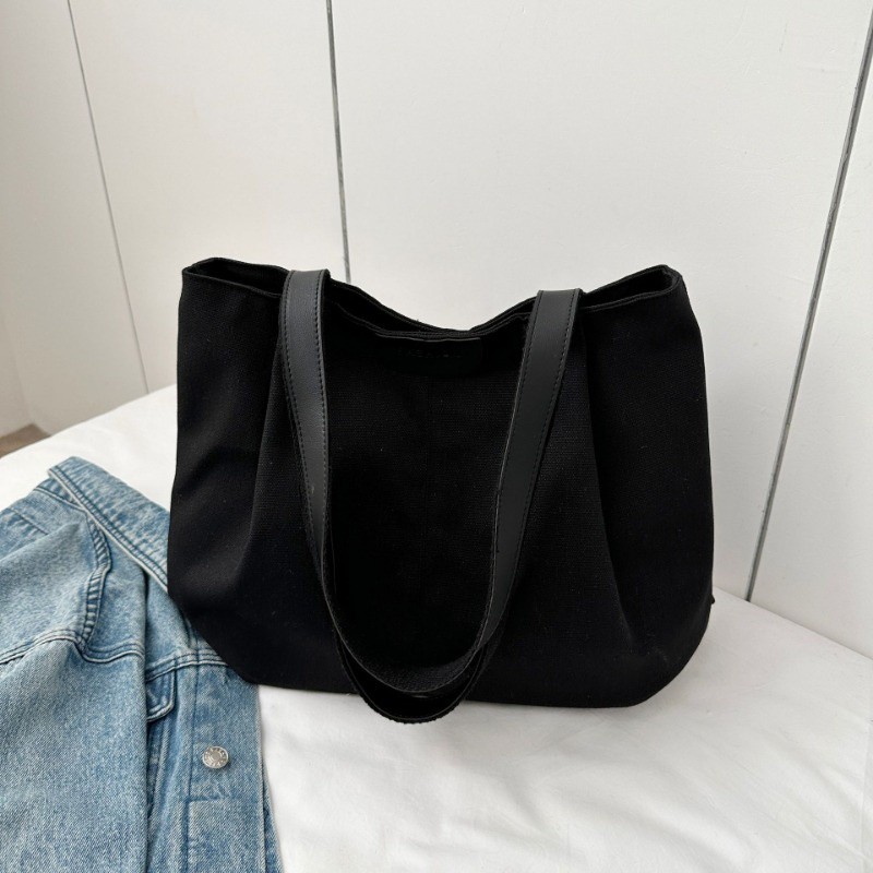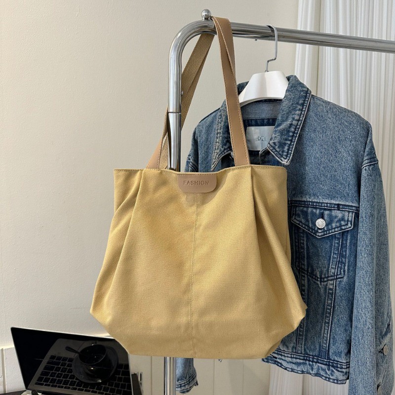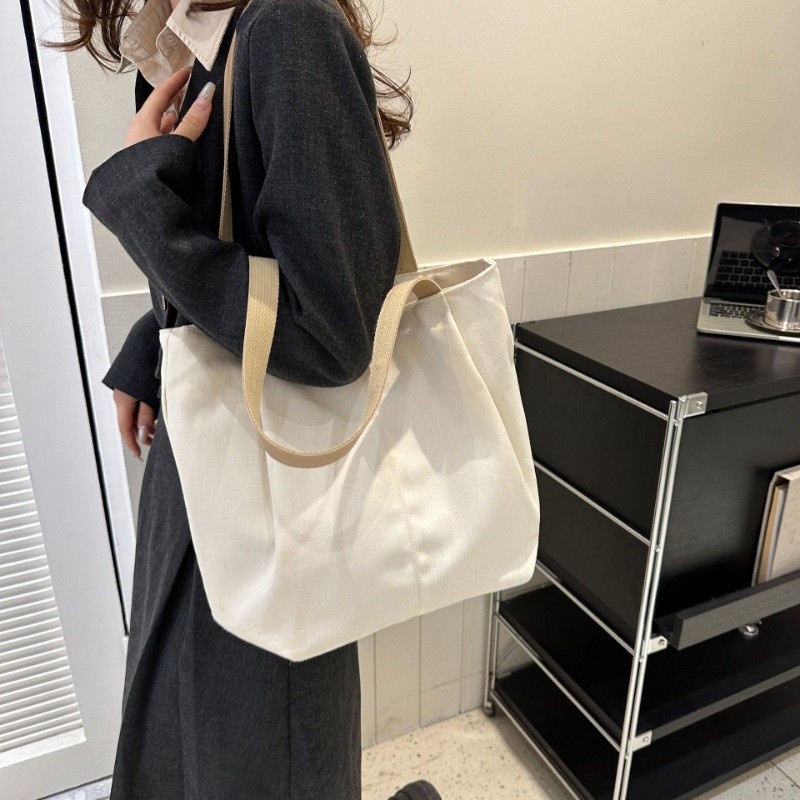 Ielgy Large-Capacity Canvas Fashion Casual Solid Color One-Shoulder Portable Commuter Tote Bag