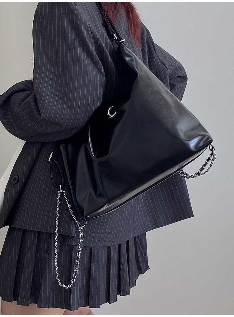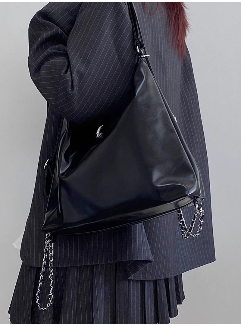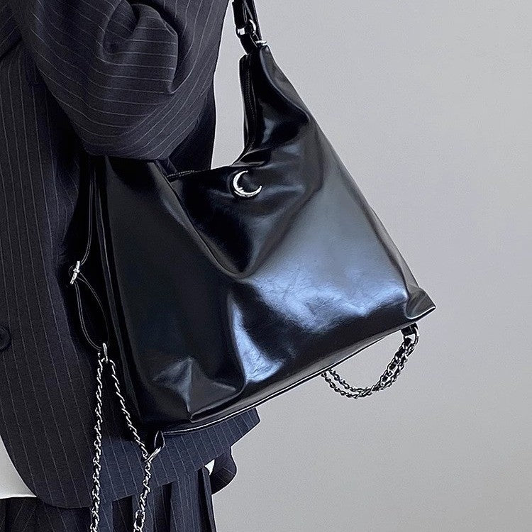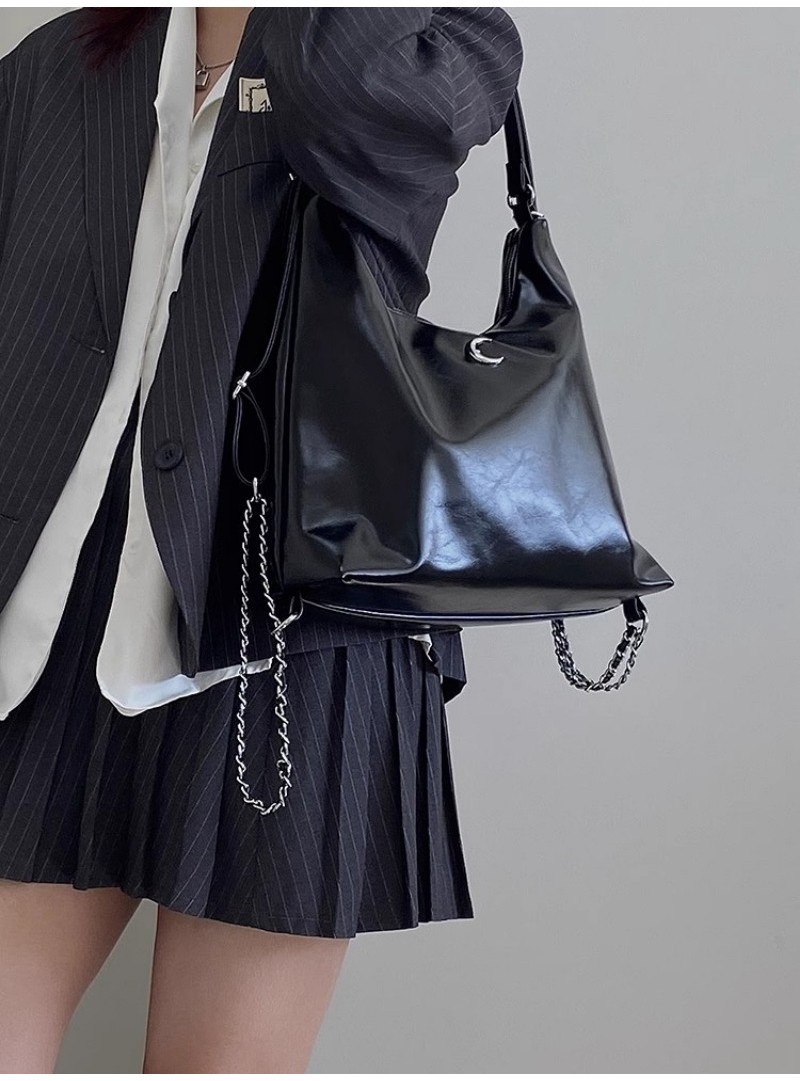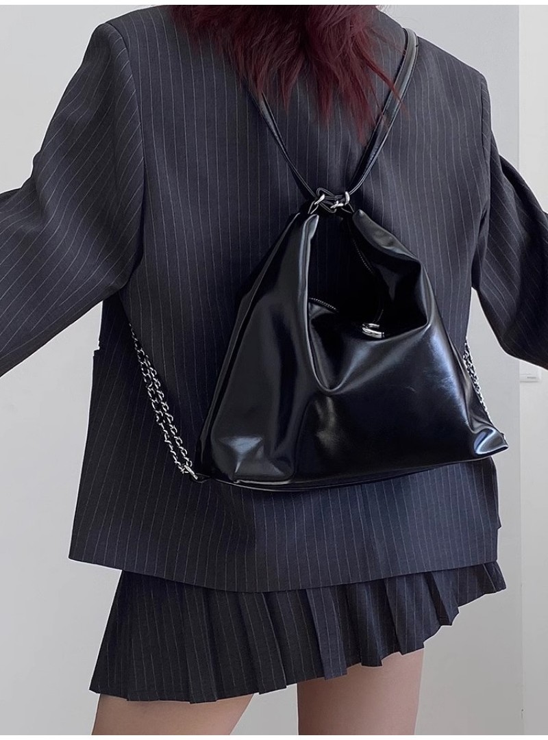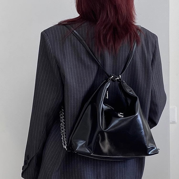 Ielgy Large-Capacity Commuter Soft Leather Multi-Purpose Backpack Preppy Style Fashion All-Match Chain Shoulder Tote Bag
