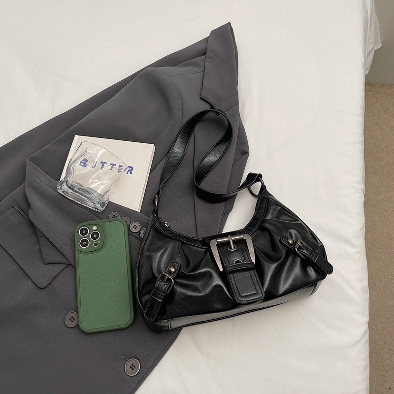 Ielgy Shoulder Tote Bag American Retro Commuter Classy Distressed Style Underarm Motorcycle Bag