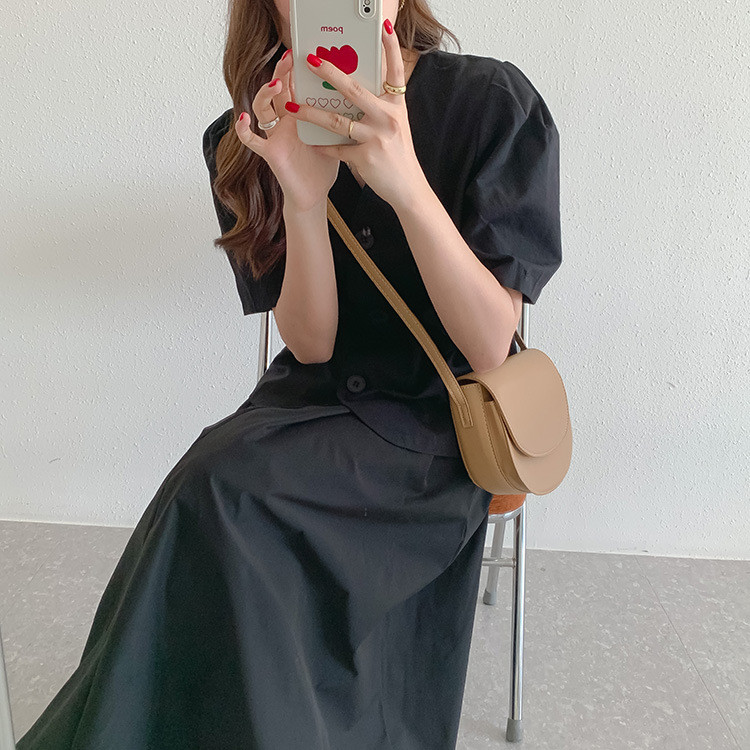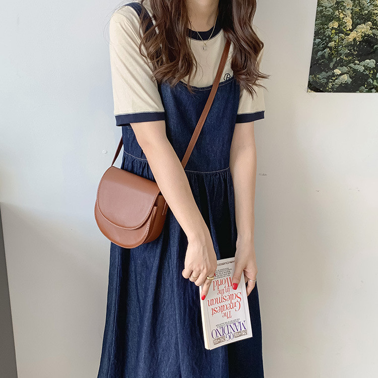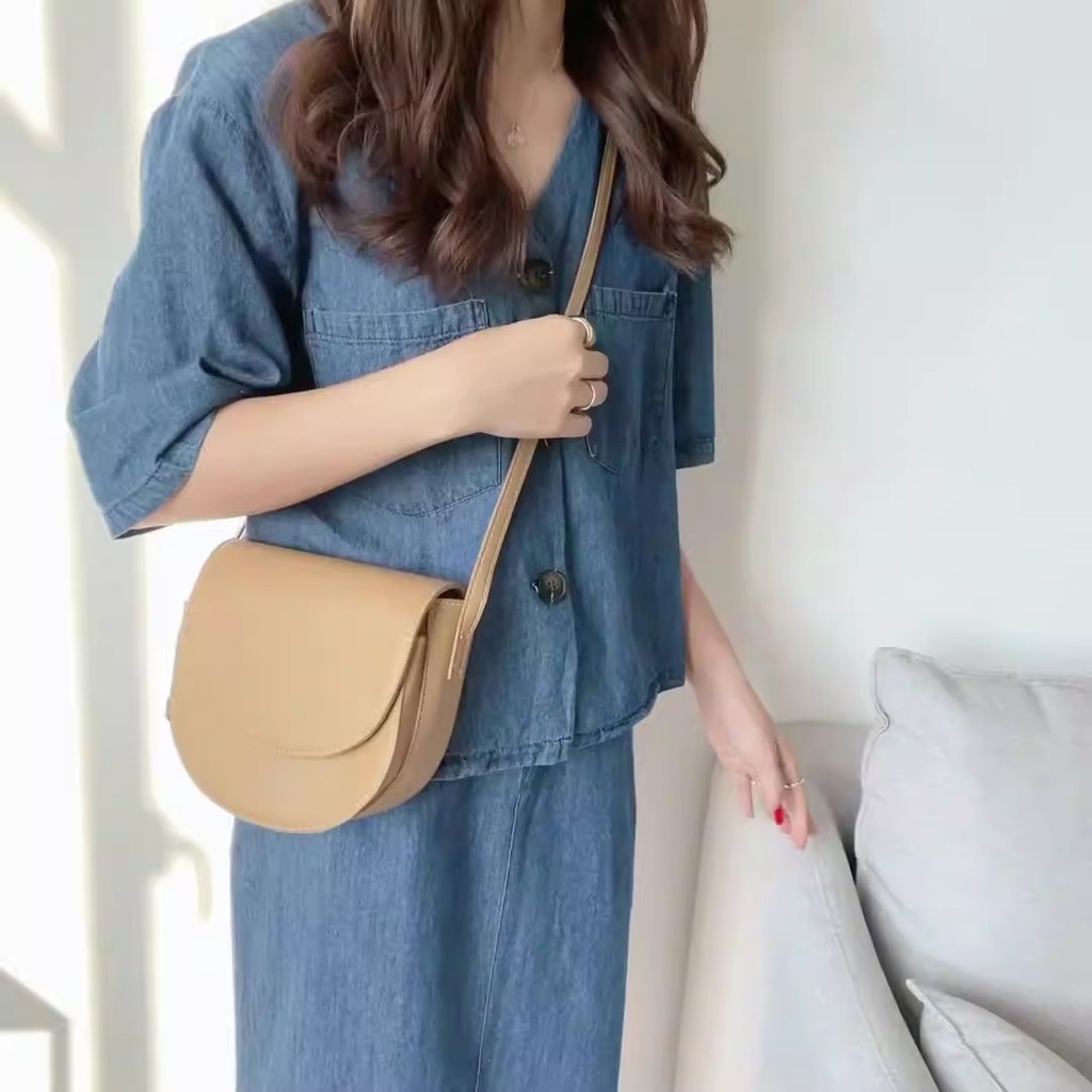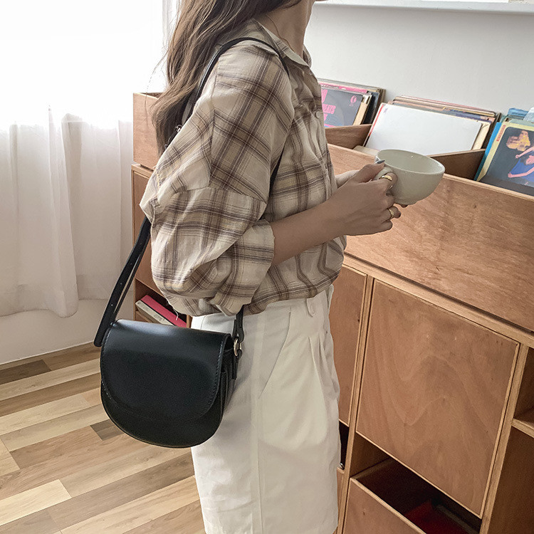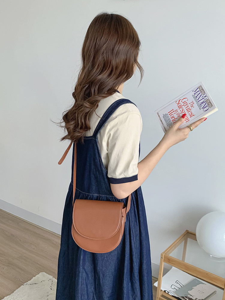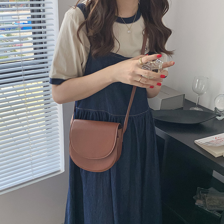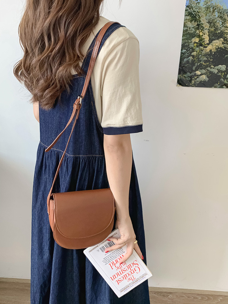 IELGY Simple Retro Solid Color Saddle Crossbody Korean Ladies