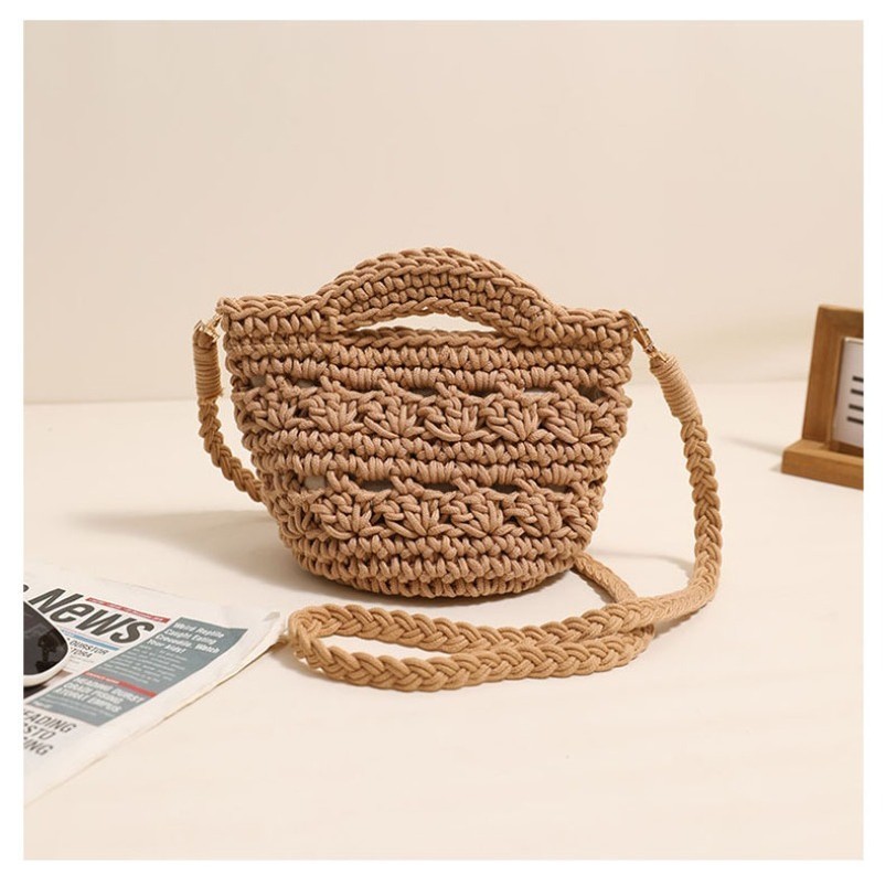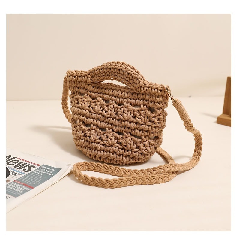 Ielgy Cross-Body Cotton Thread Woven Bag All-Match Hollow Straw Vacation Beach Bag Fresh