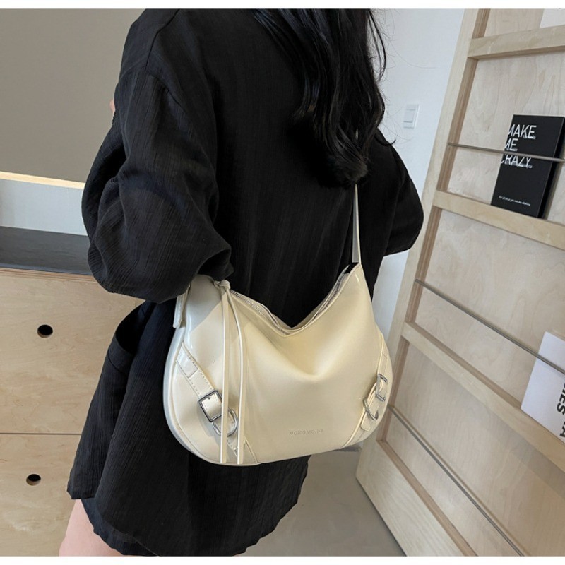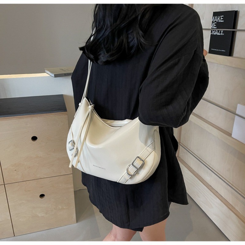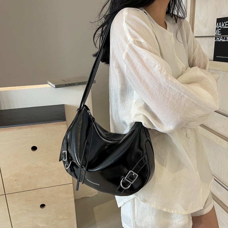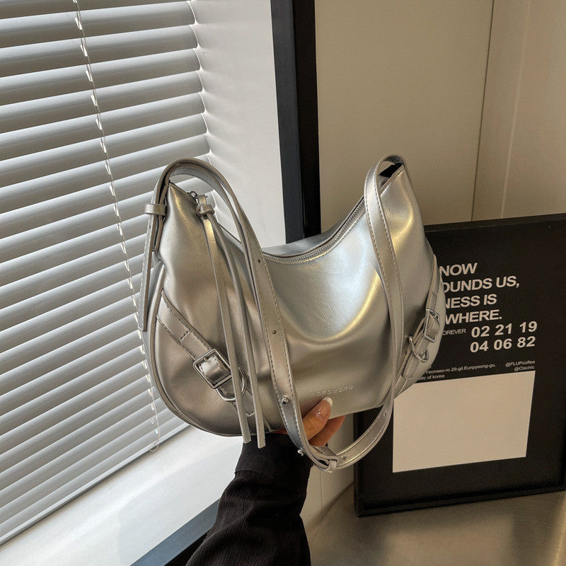 Ielgy Large-Capacity Commuter Underarm Bag Ladies Silver Trendy Fashion Niche Shoulder Bag Texture All-Match Mess