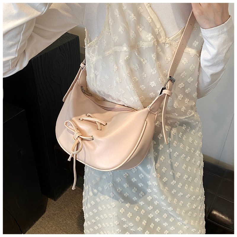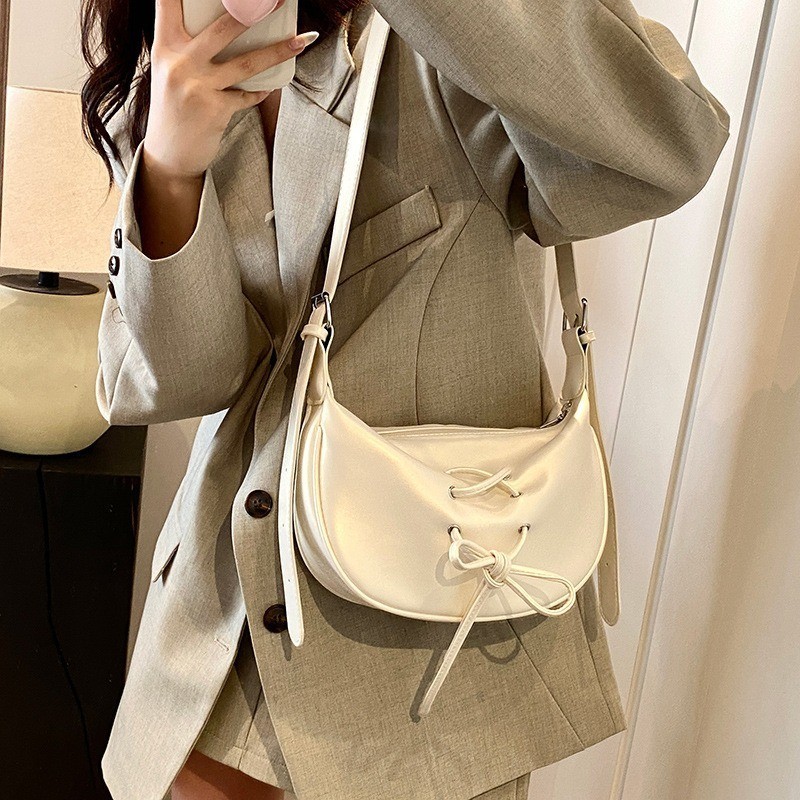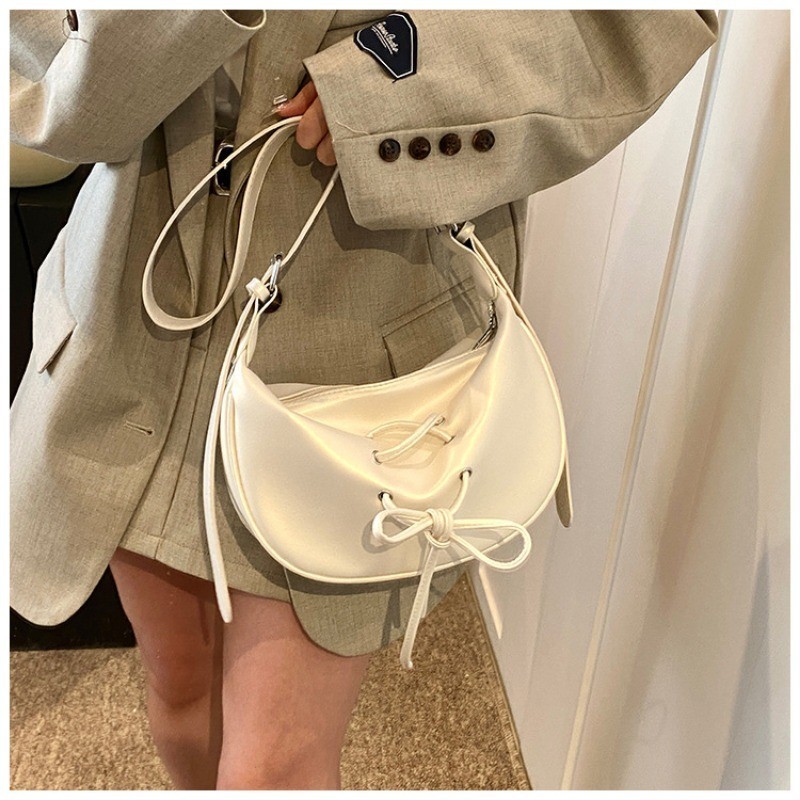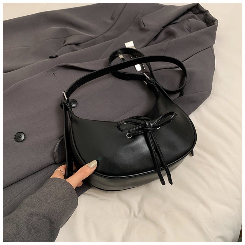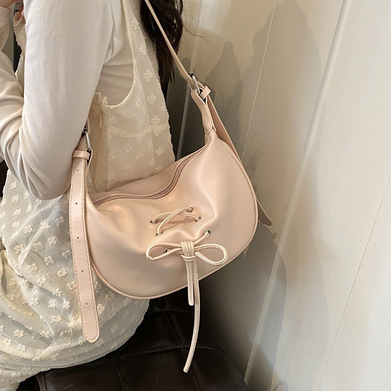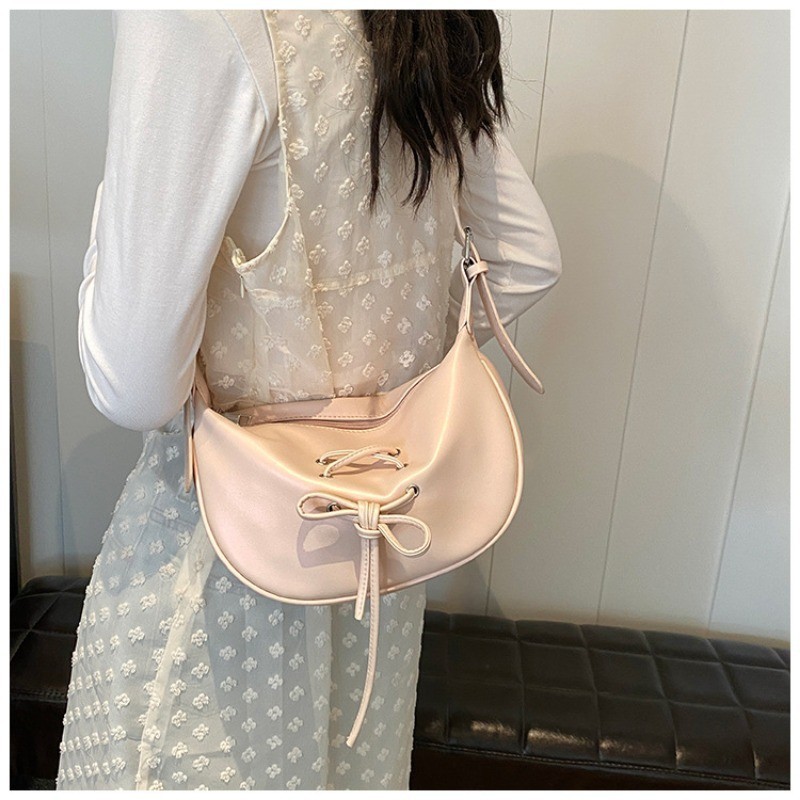 Ielgy Large-Capacity One-Shoulder Tote Bag All-Match Retro Fashion Bow Cross-Body Du