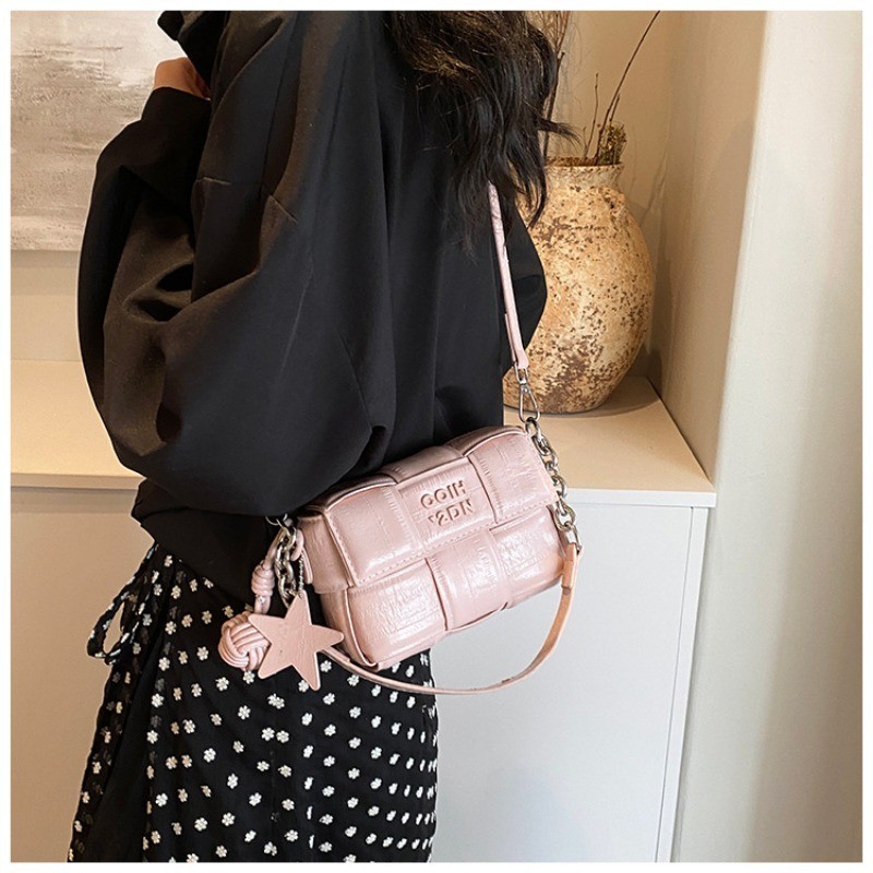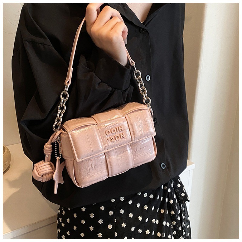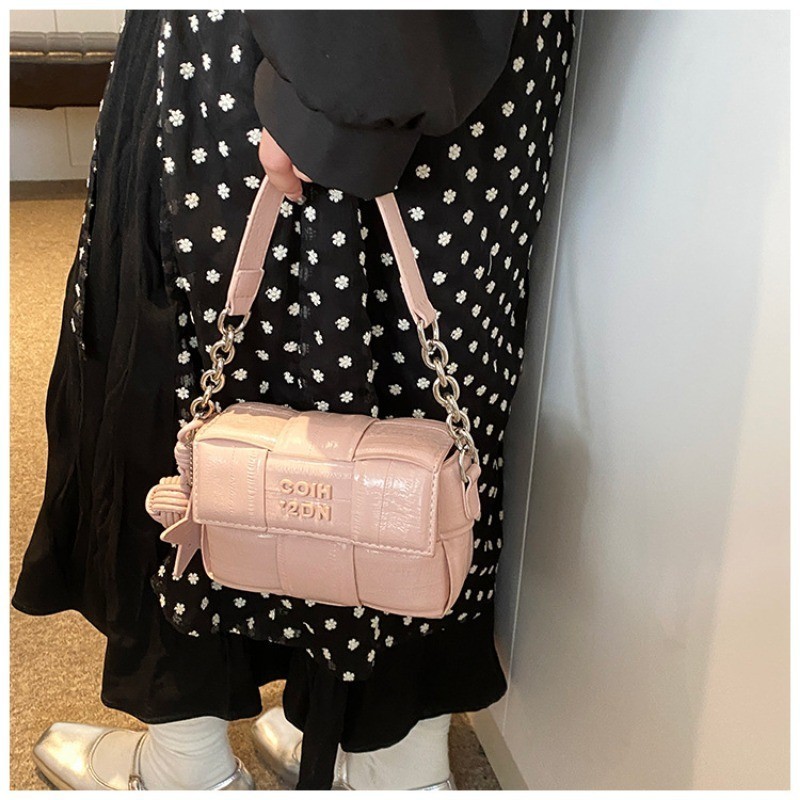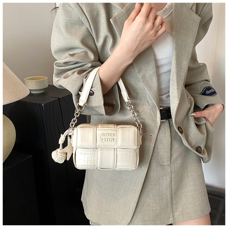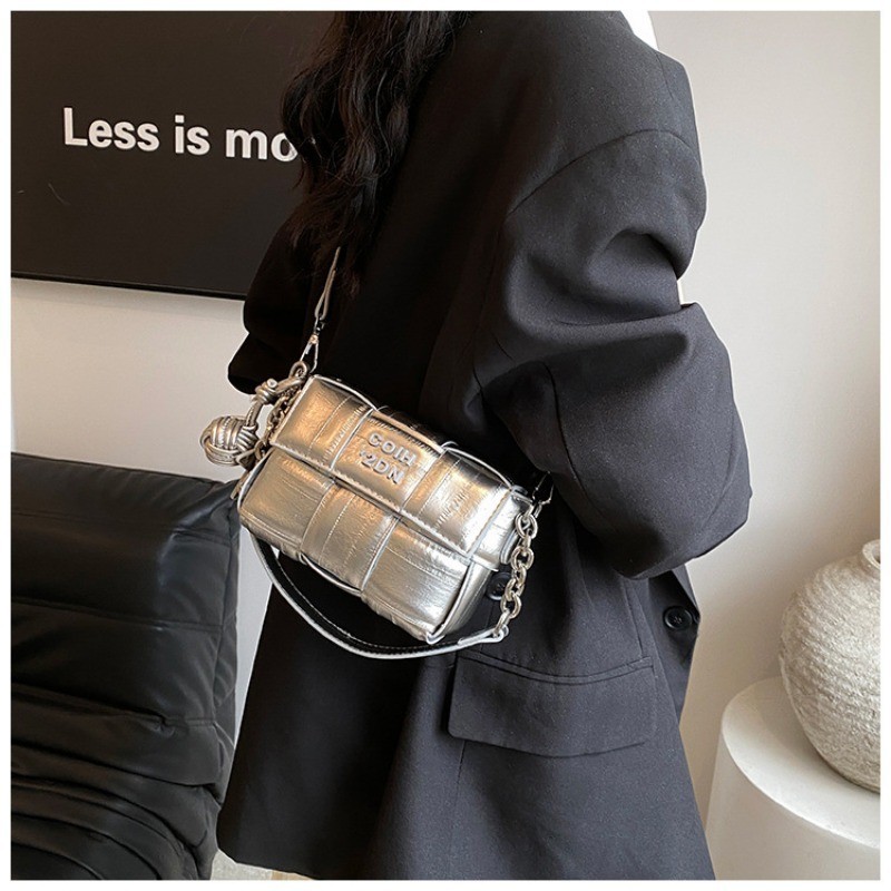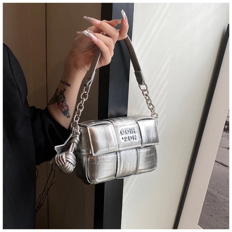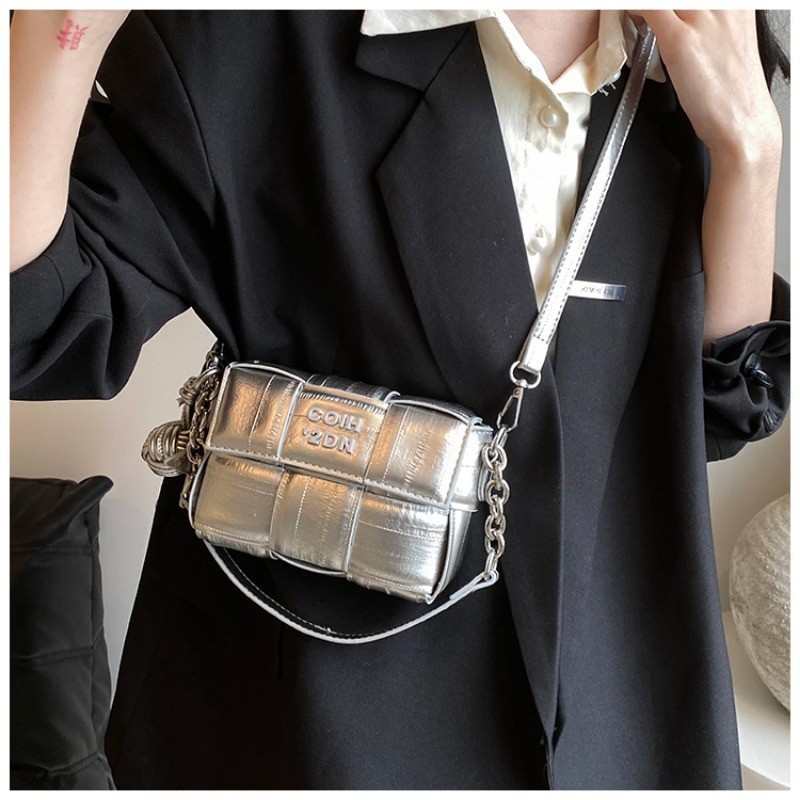 Ielgy All-Match Silver Feel One-Shoulder Messenger Woven Small Square Bag High-End Mobile Phone