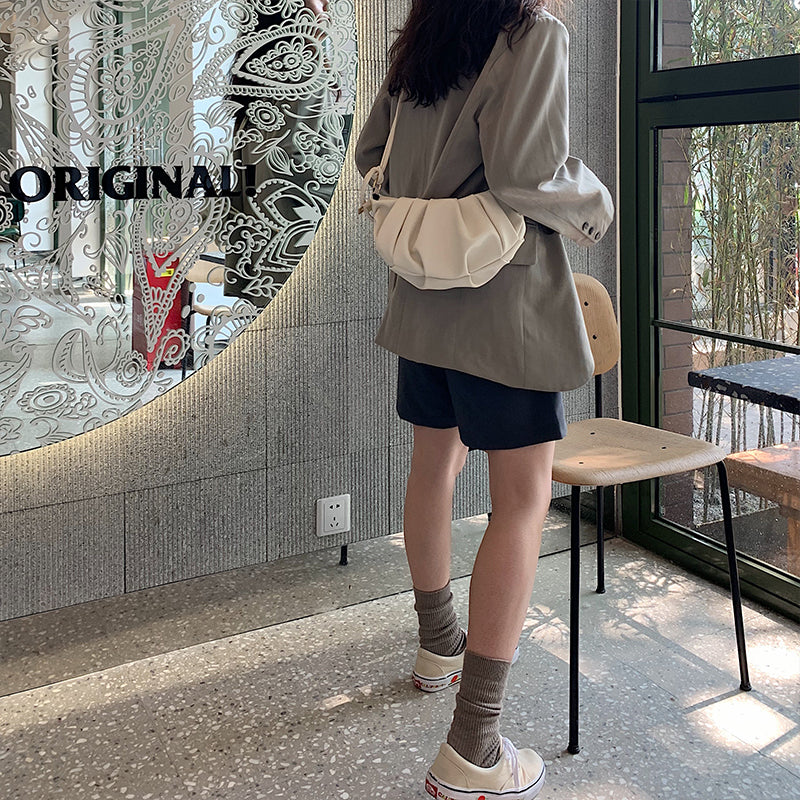 IELGY ALL-match Soft surface PU Shoulder Plain Portable Women's Bag Casual Fold