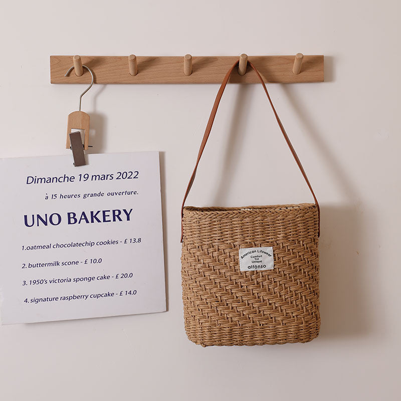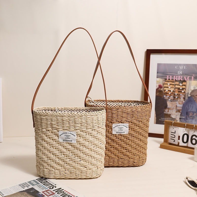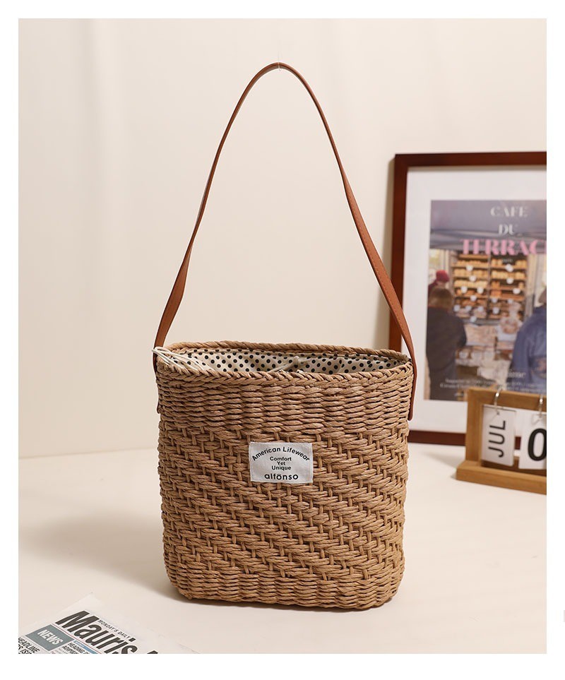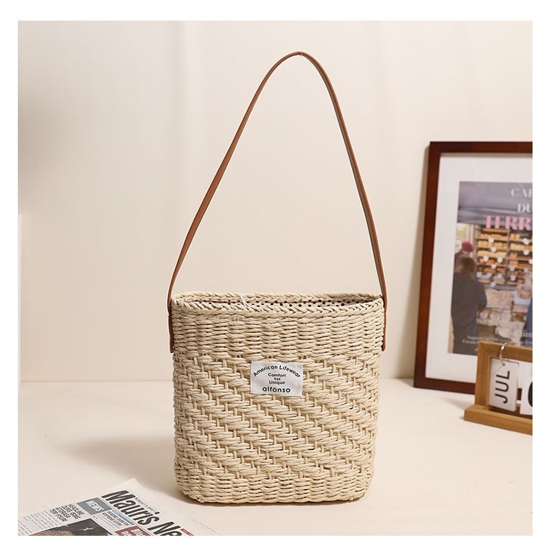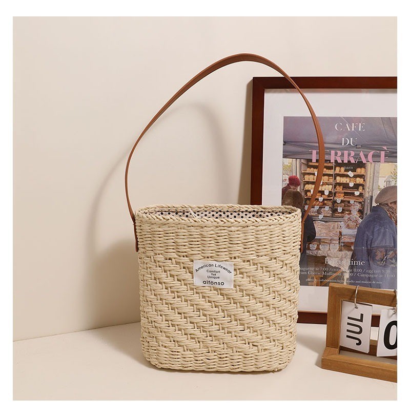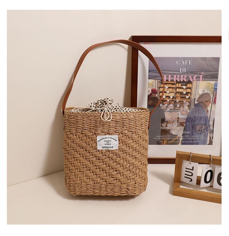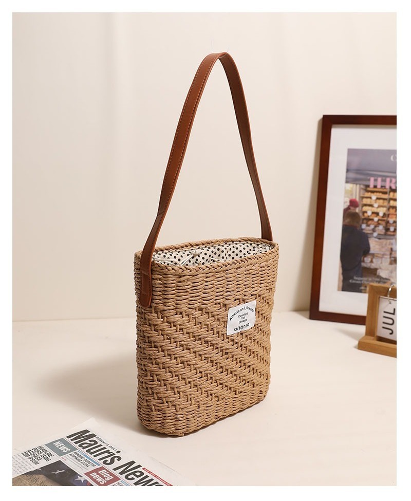 Ielgy All-Match Square Shoulder Straw Bag Ladies Simple Underarm Woven Bag Vacation Style Beach Bag