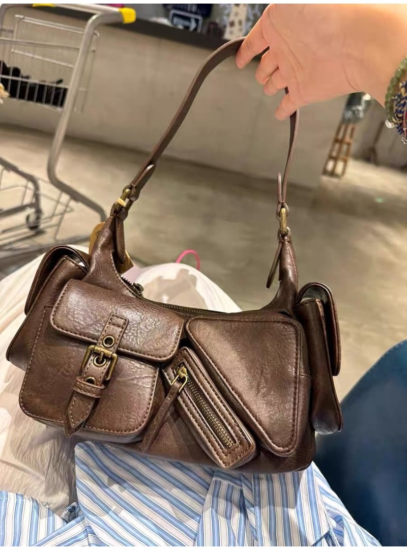 Ielgy American Retro Motorcycle Style One-Shoulder Underarm Bag Niche Design Sweet Cool Portable Messenger