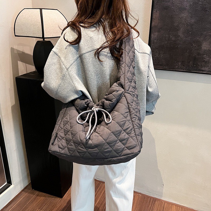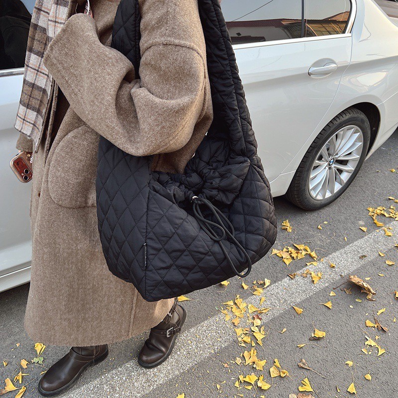Ielgy Autumn Winter Large-Capacity Commuter Niche Cross-Body Tote Bag Ladies Canvas One-Shoulder Cotton