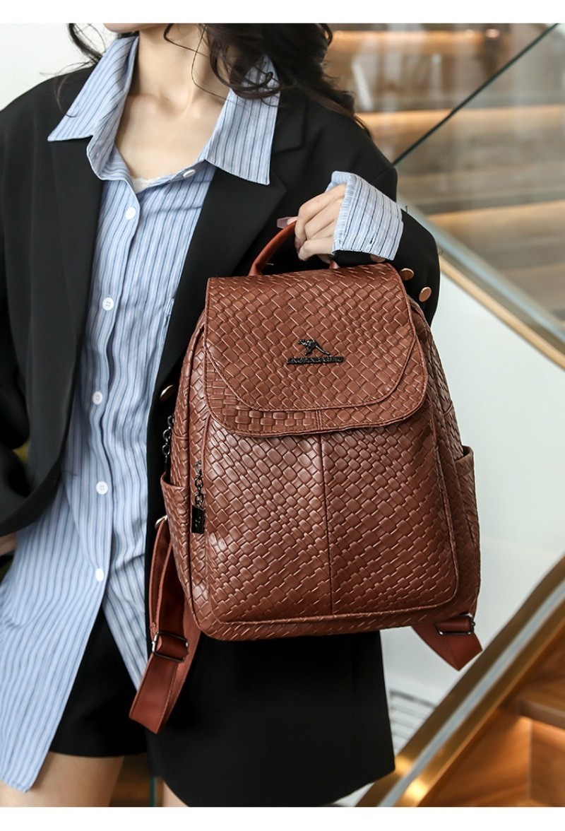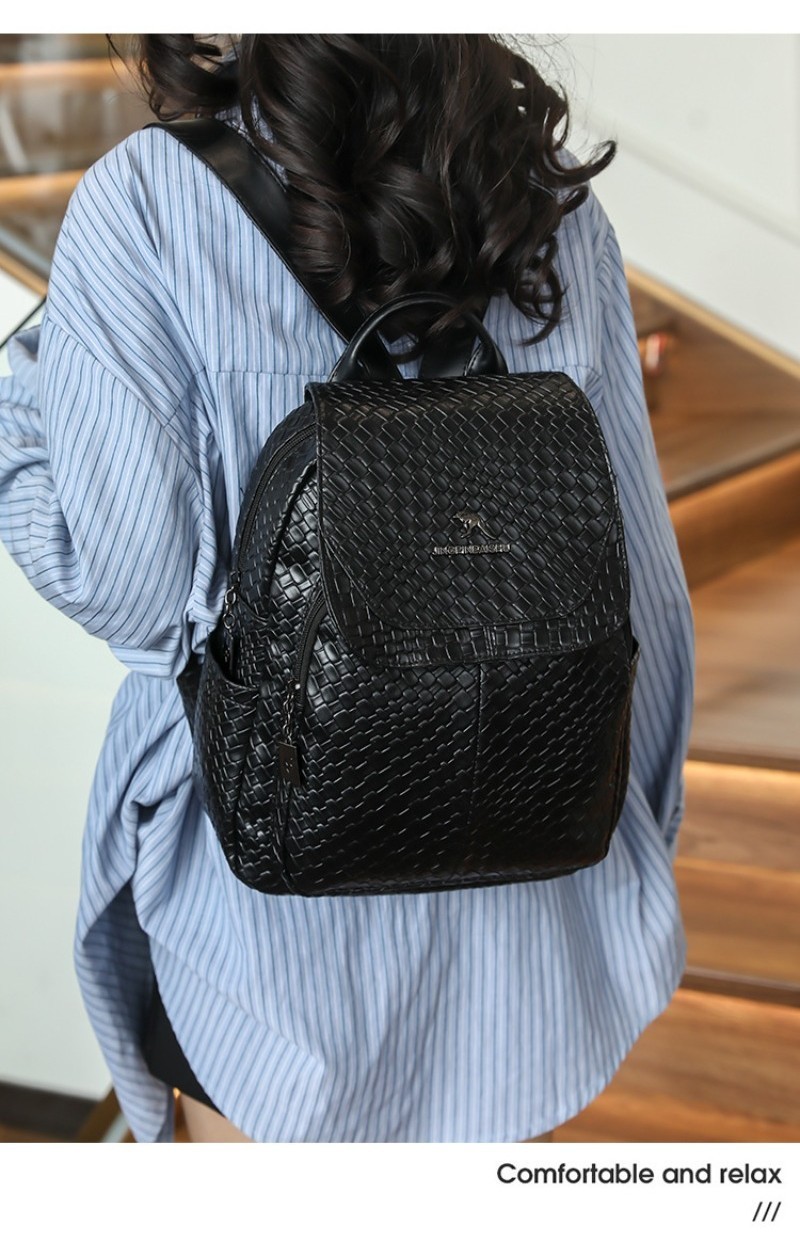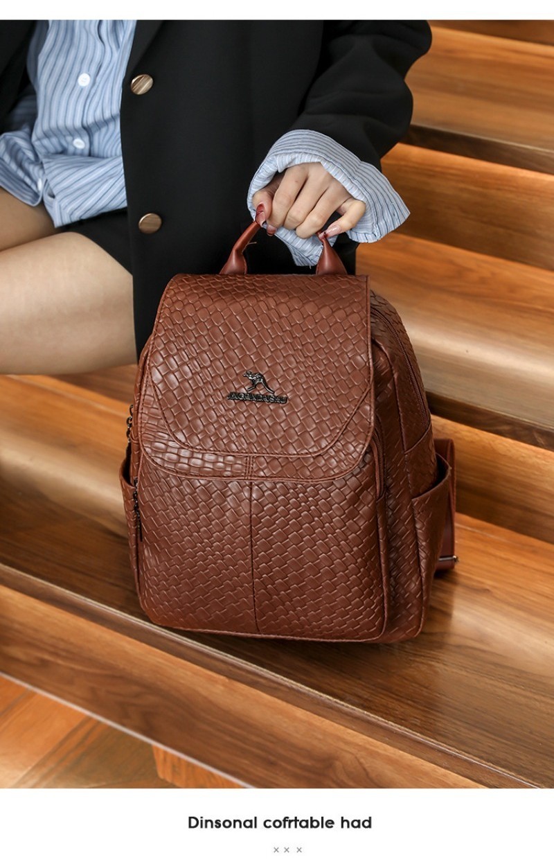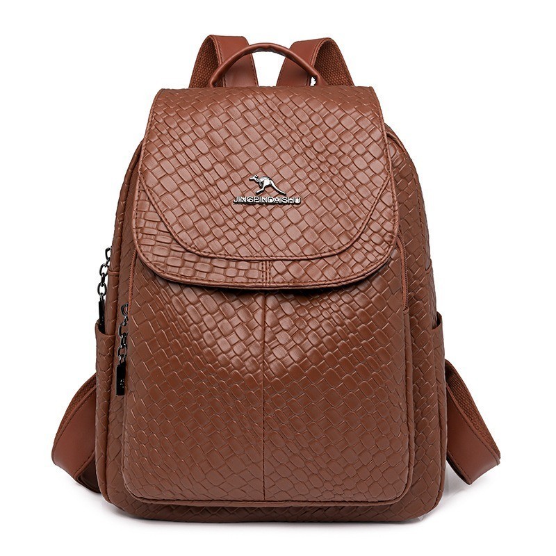 Ielgy Backpack Soft Leather Backpack Ladies Korean Version Fashion Student Simple Sense School Bag