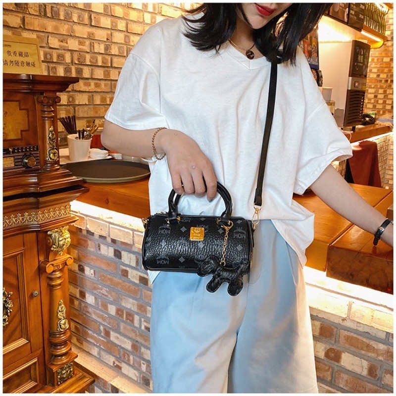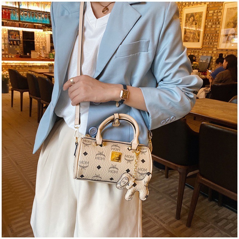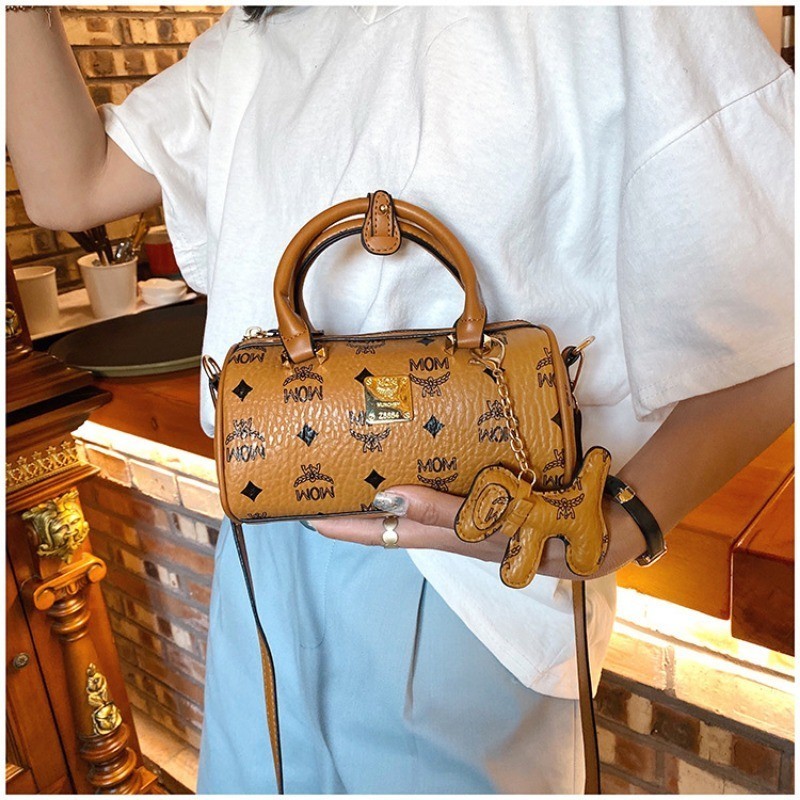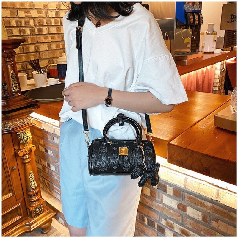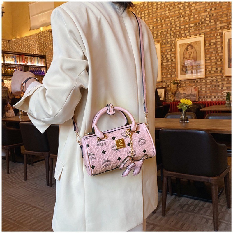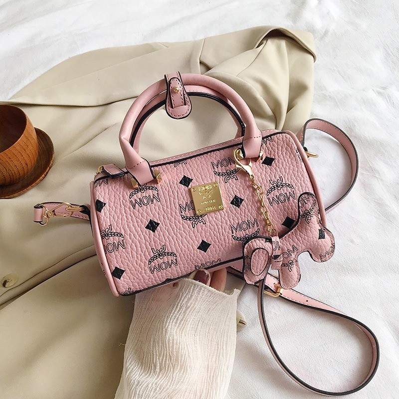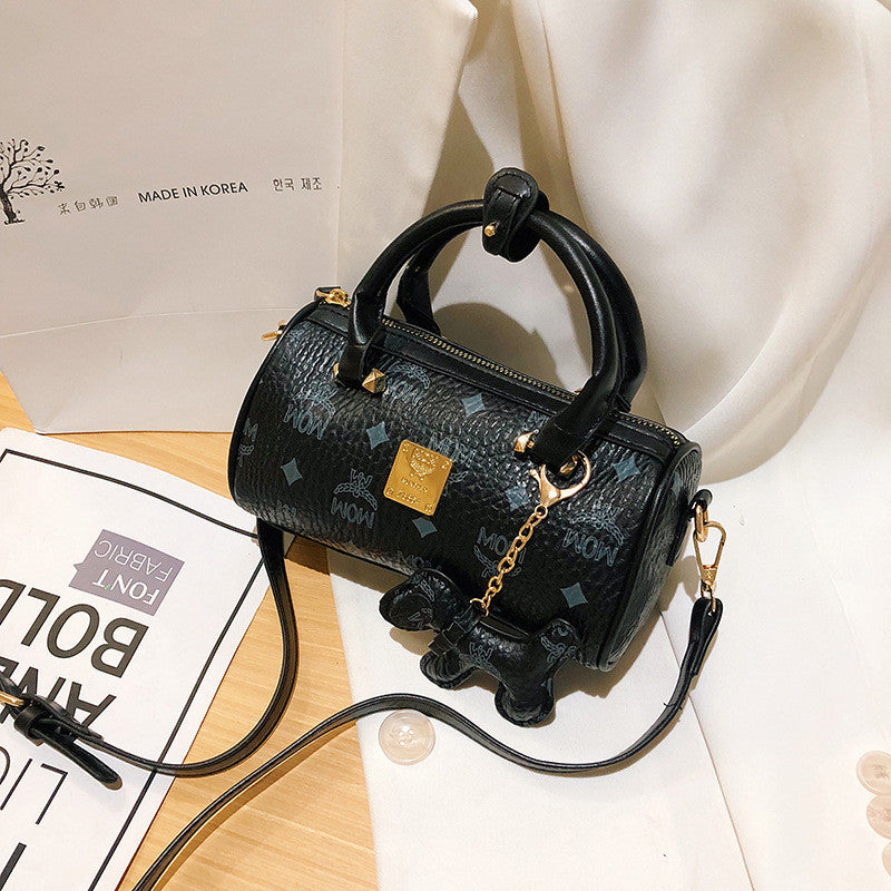 Ielgy Boston Letter Cylindrical Handbag Shoulder Crossbody Bag