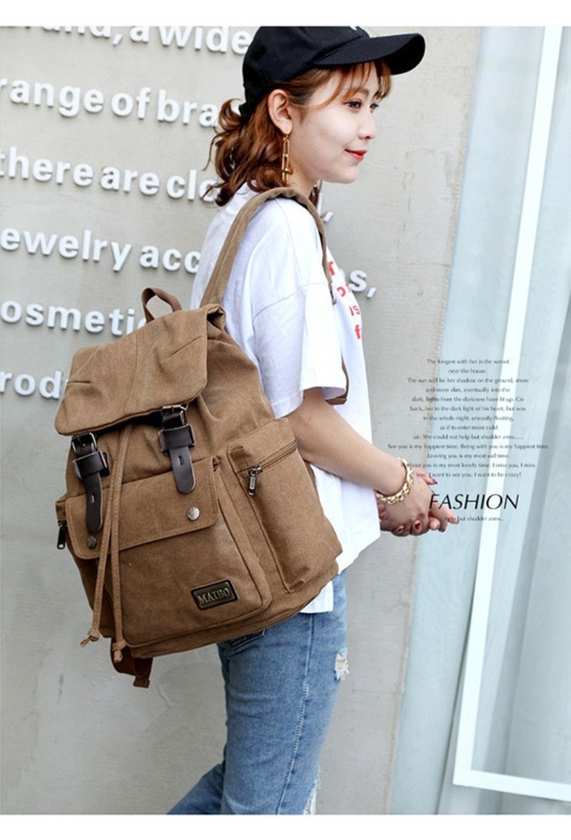 Ielgy Canvas Backpack Leisure Outdoor Travel Backpack Student Large Capacity School Bag