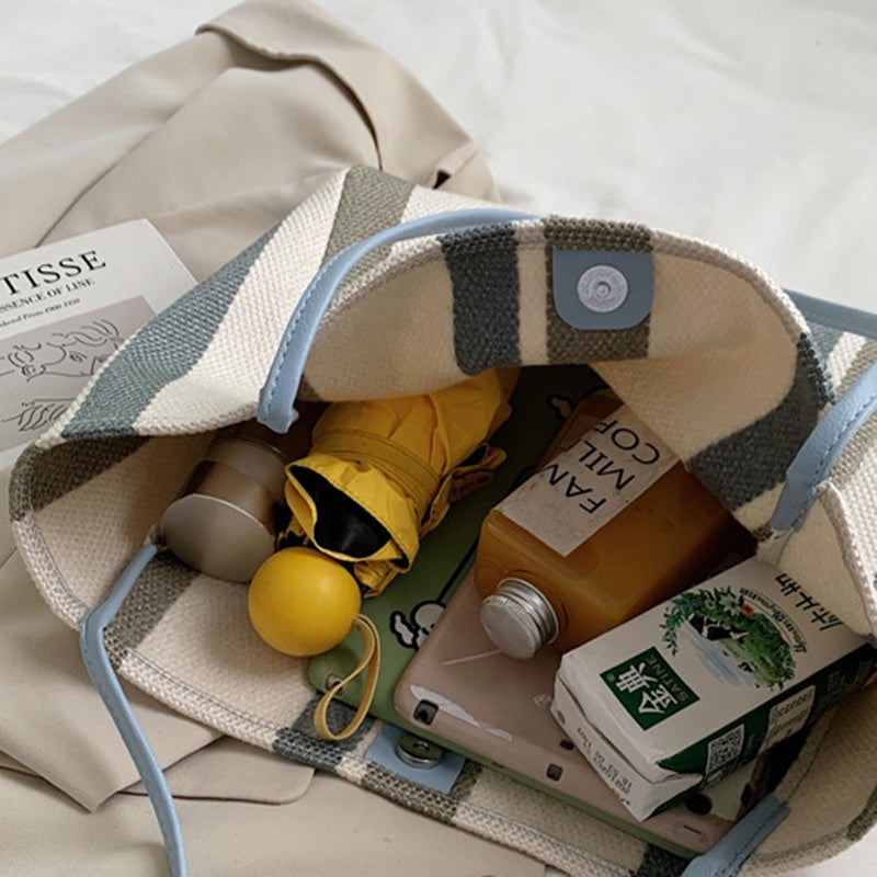 IELGY Canvas Stripe Bag Large Capacity Female Bag Trend Summer Simple