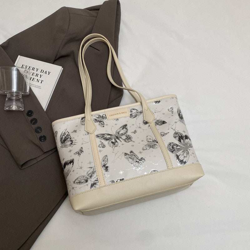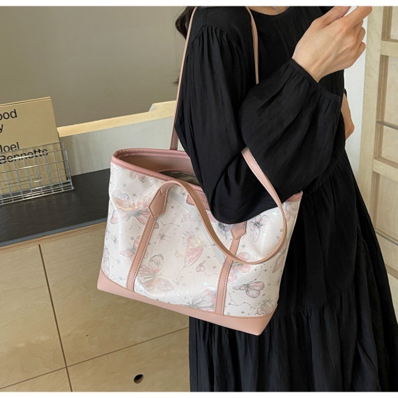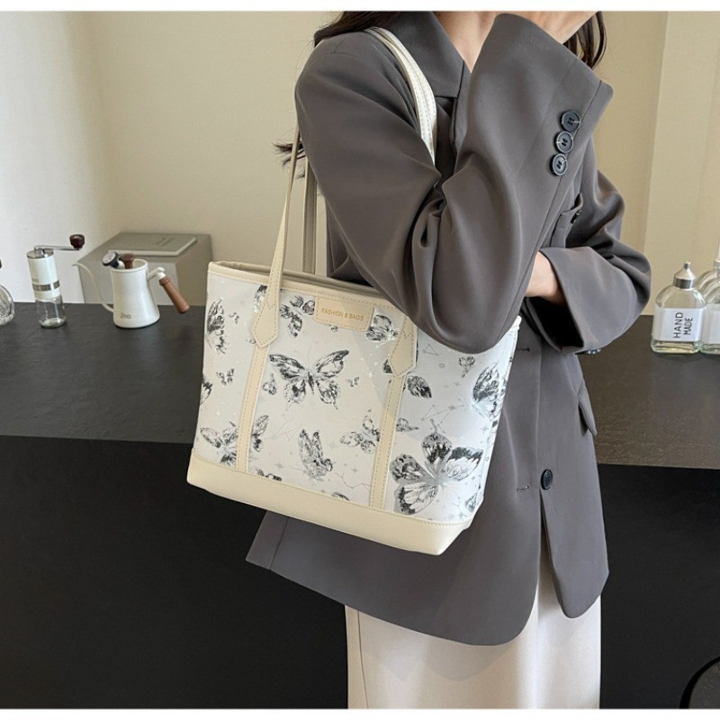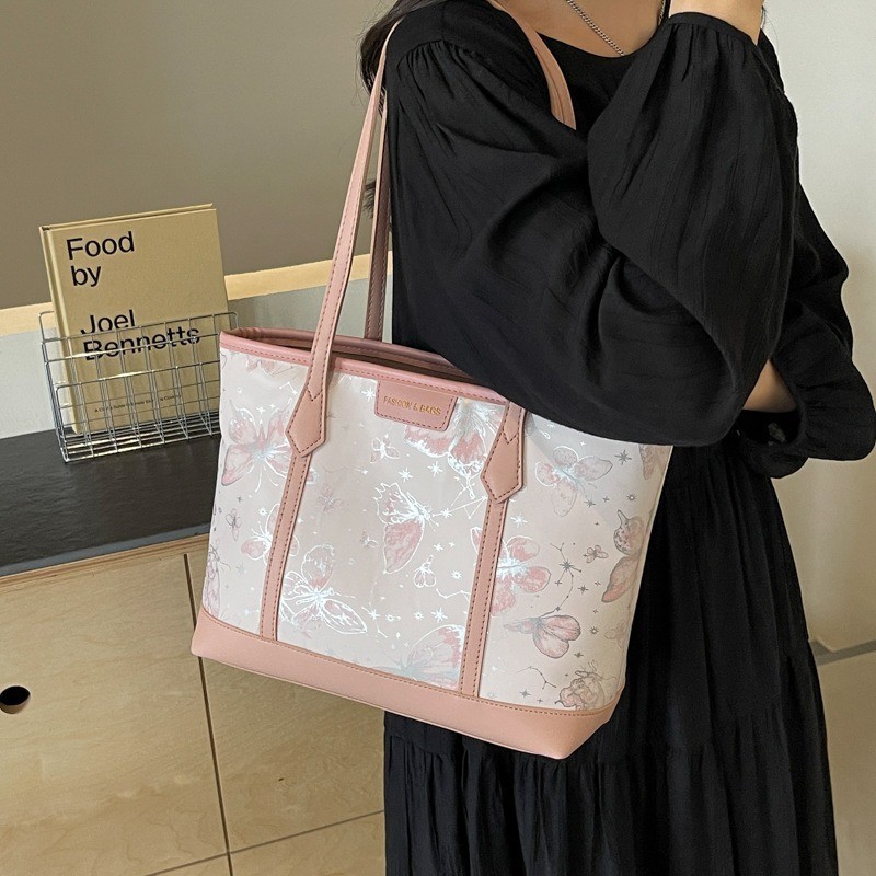 Ielgy Casual All-Match Butterfly One-Shoulder College Students Class Commuter Tote Bag Large Capacity