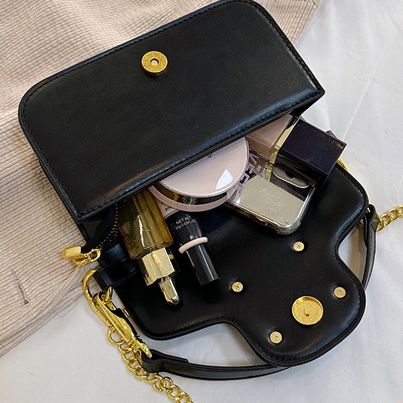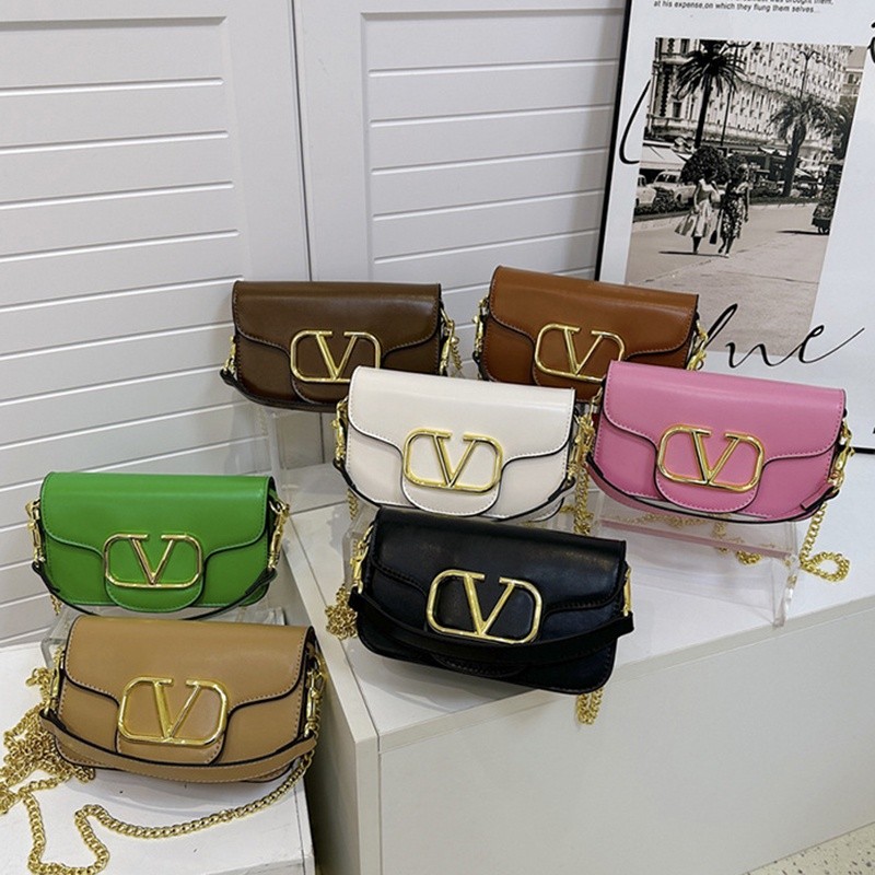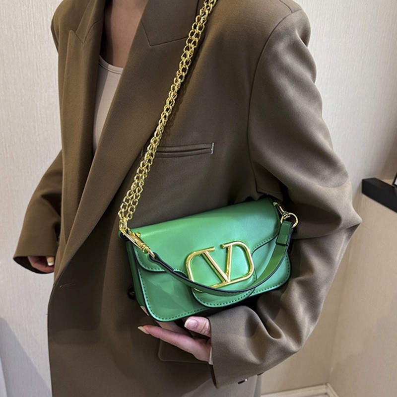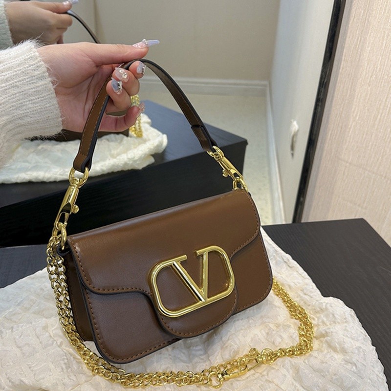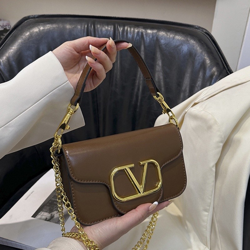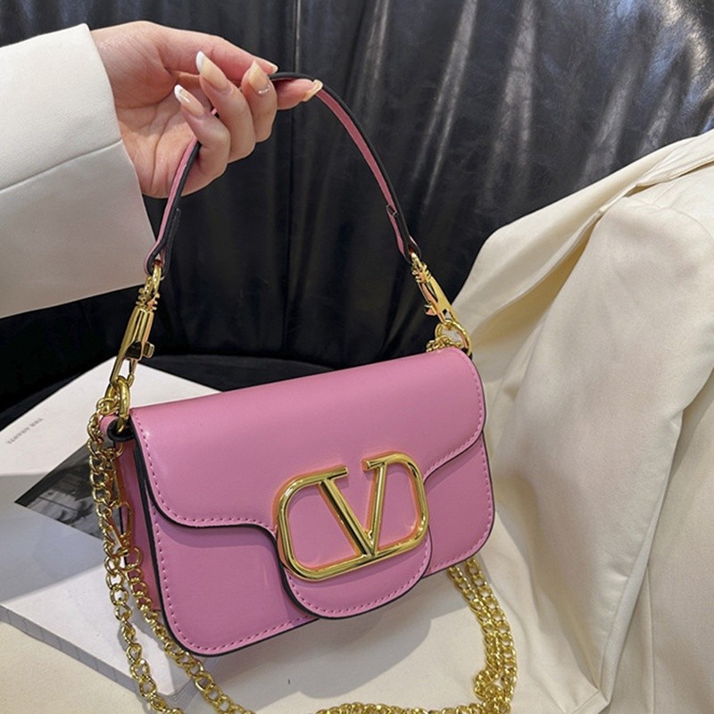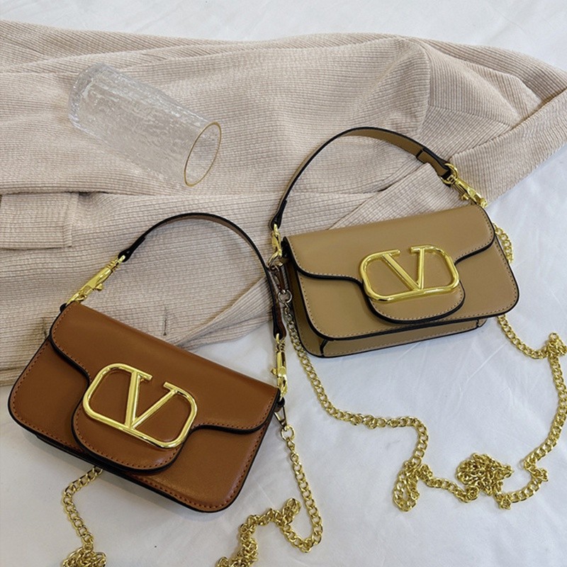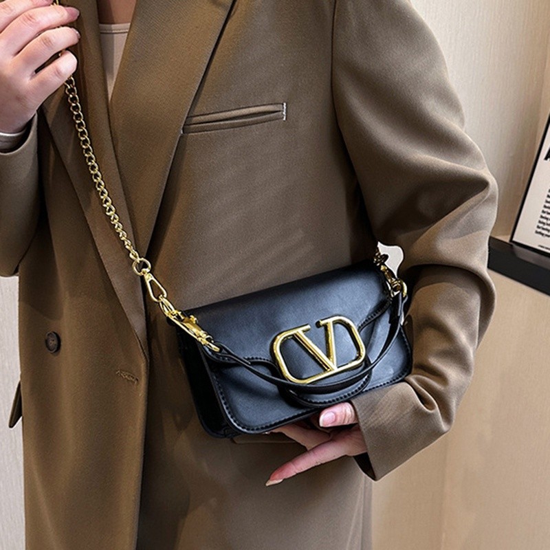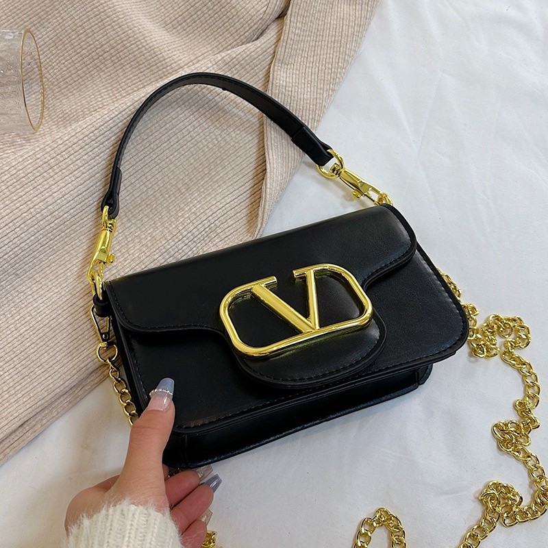IELGY Chain Bag Women's Simple Fashion Texture Foreign Style Golden V-shaped Design Small Square Bag