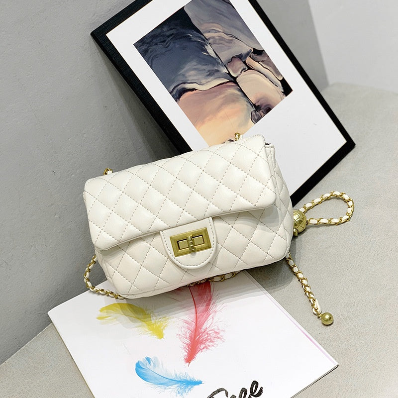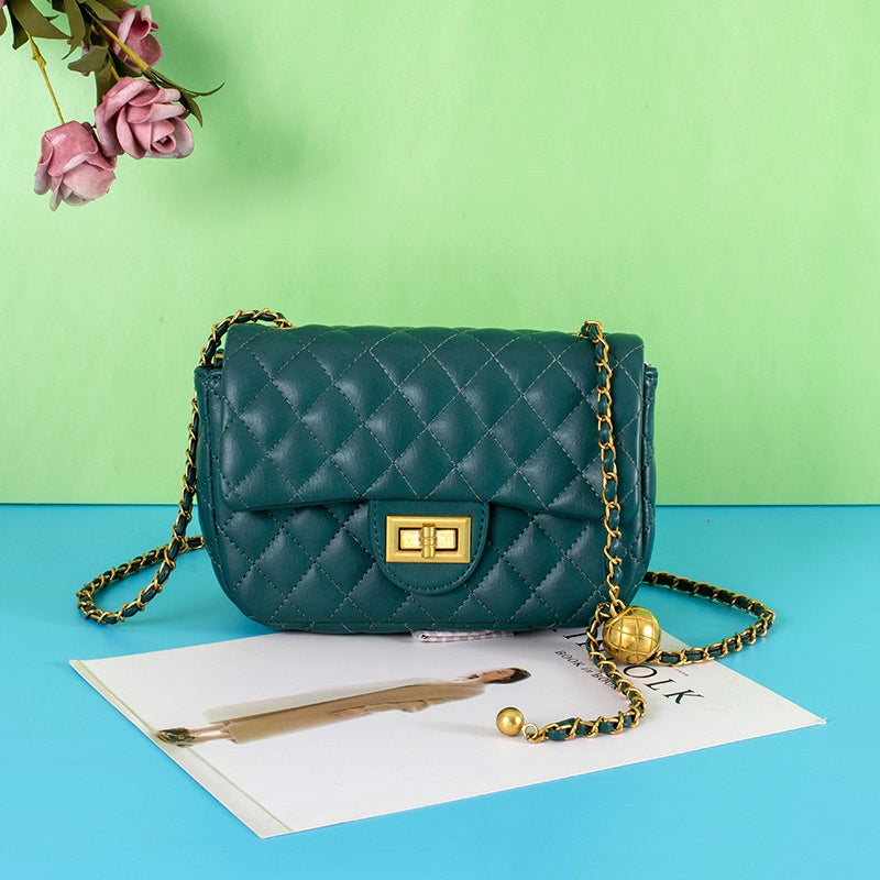 IELGY classic lock diamond chain crossbody handbag small golden ball decoration