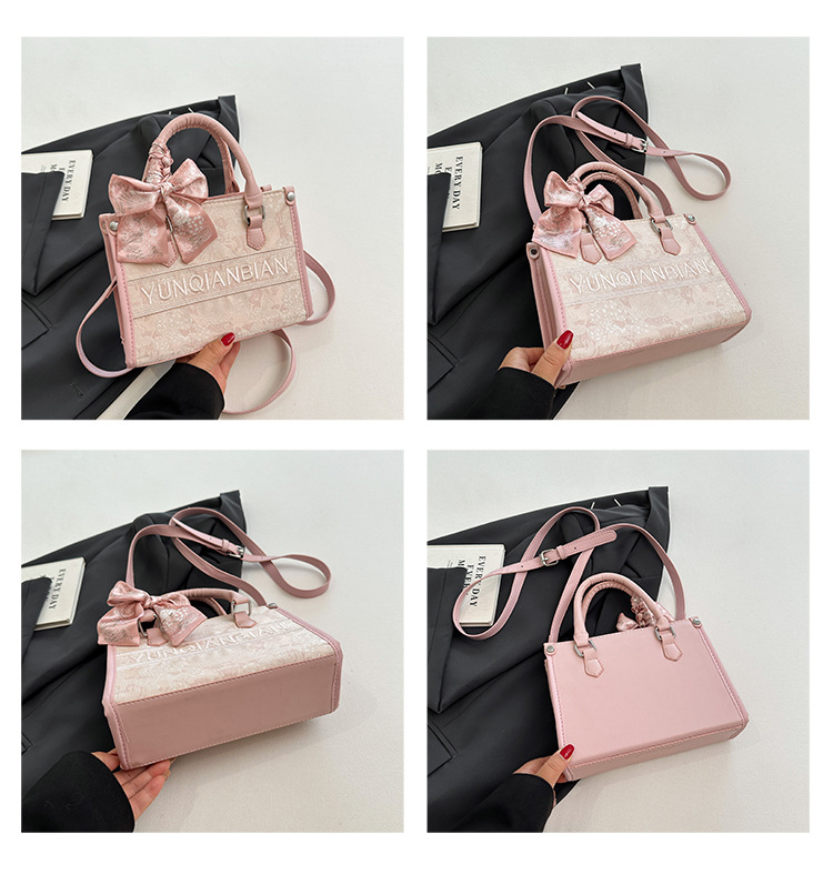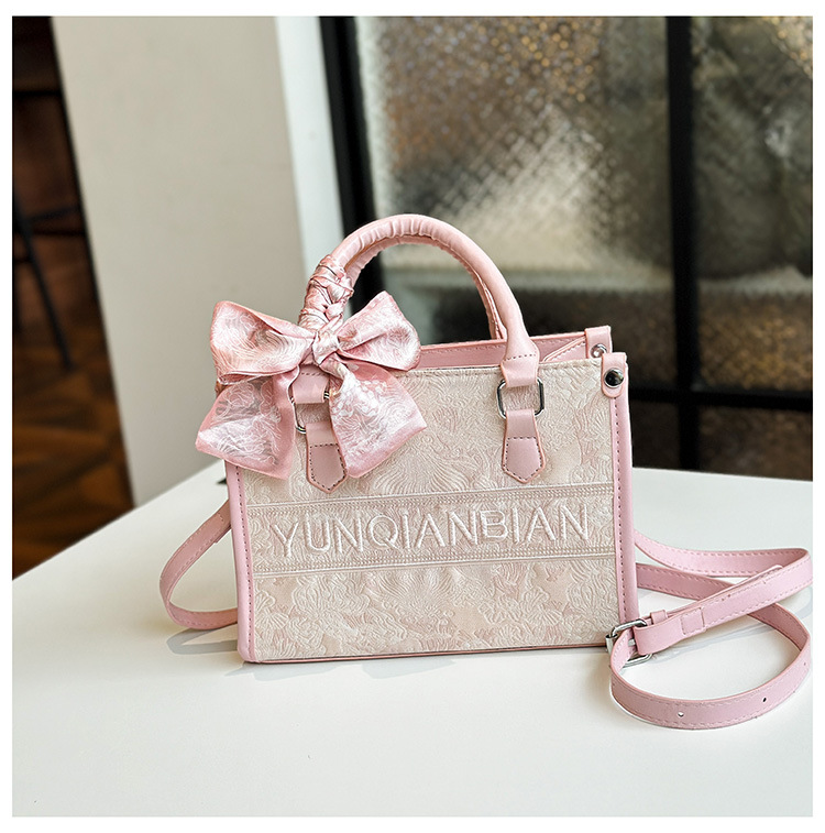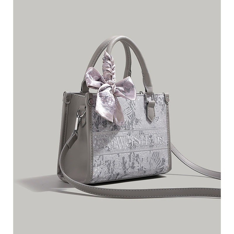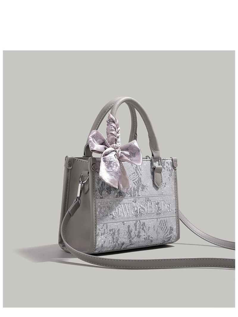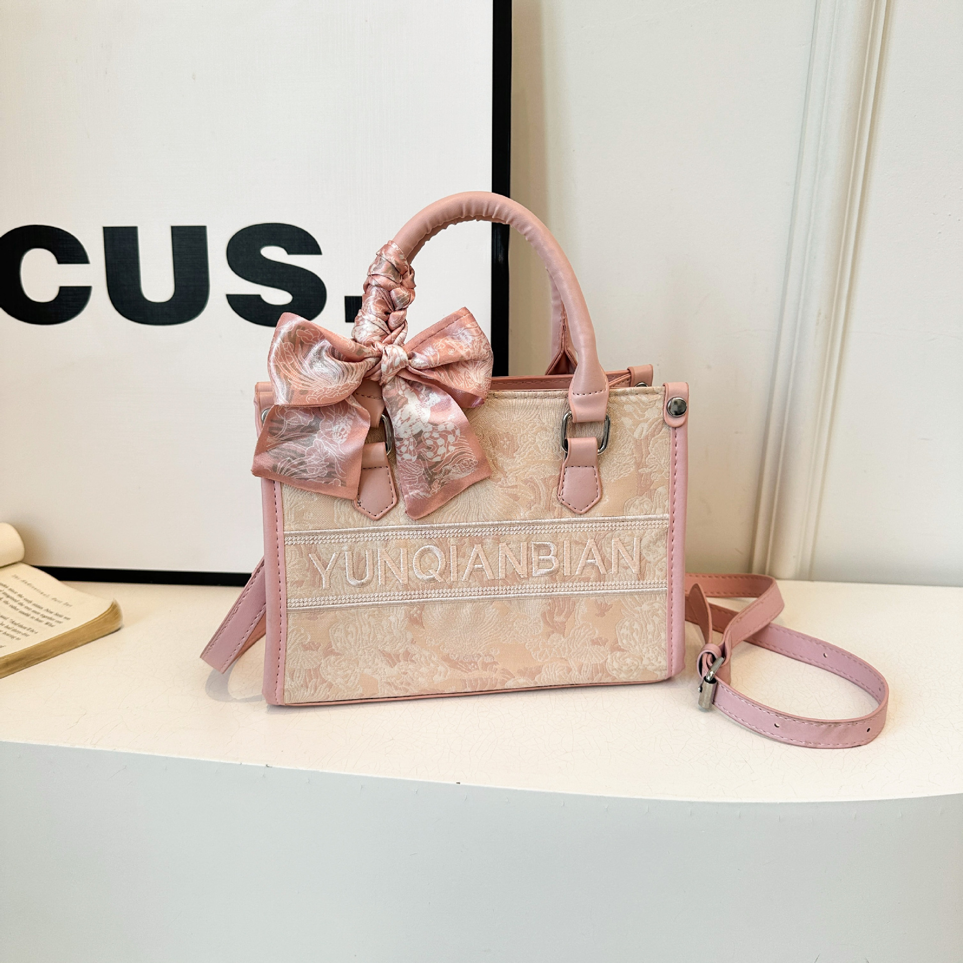 Ielgy Commuter Tote Bag High-End Pattern Embroidery Portable One-Shoulder Diagonal Shopping Bag (Ribbon Style Random Shipping)