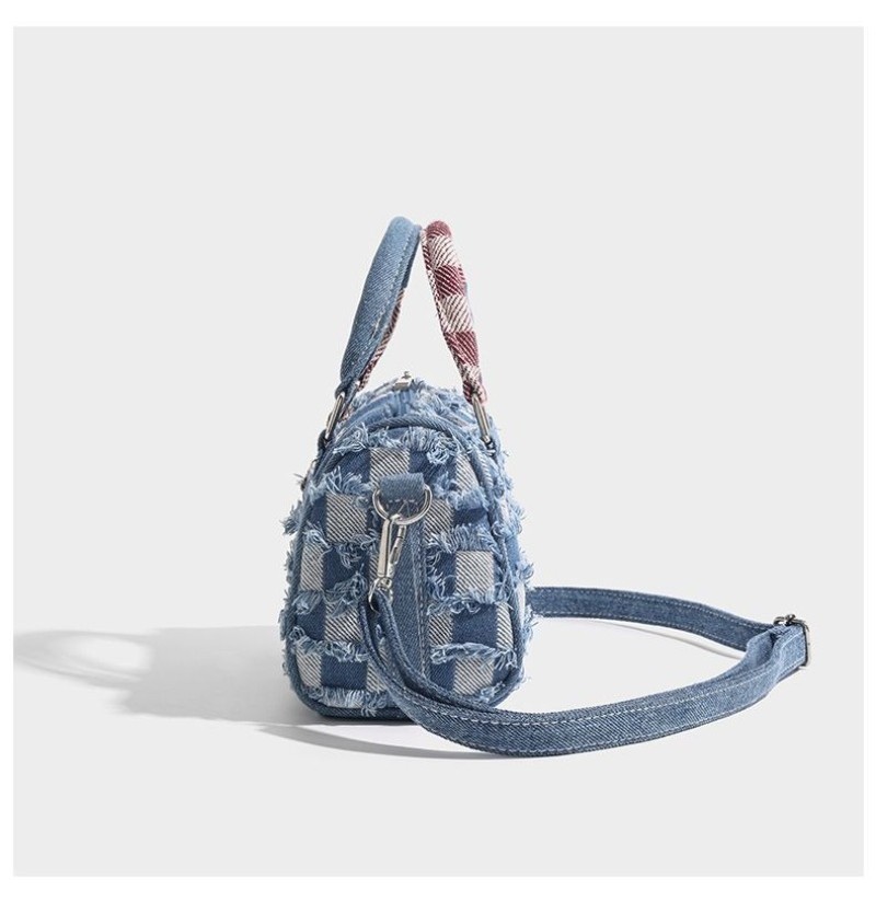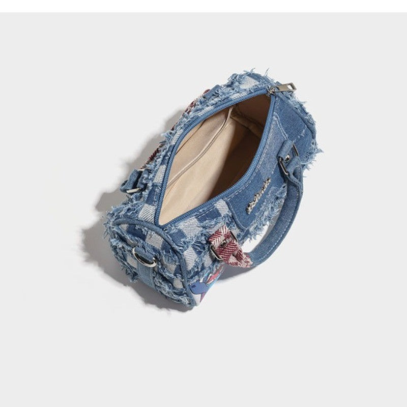 Ielgy Contrast Color Niche Cartoon Stitch Denim Bag Hole Stitching Cross-body Portable Pillow Bag