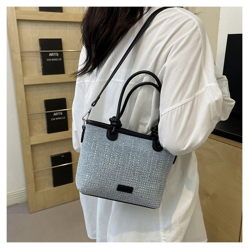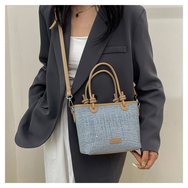 Ielgy Denim Bag All-Match Fashion Texture Cross-Body Portable Bucket Bag