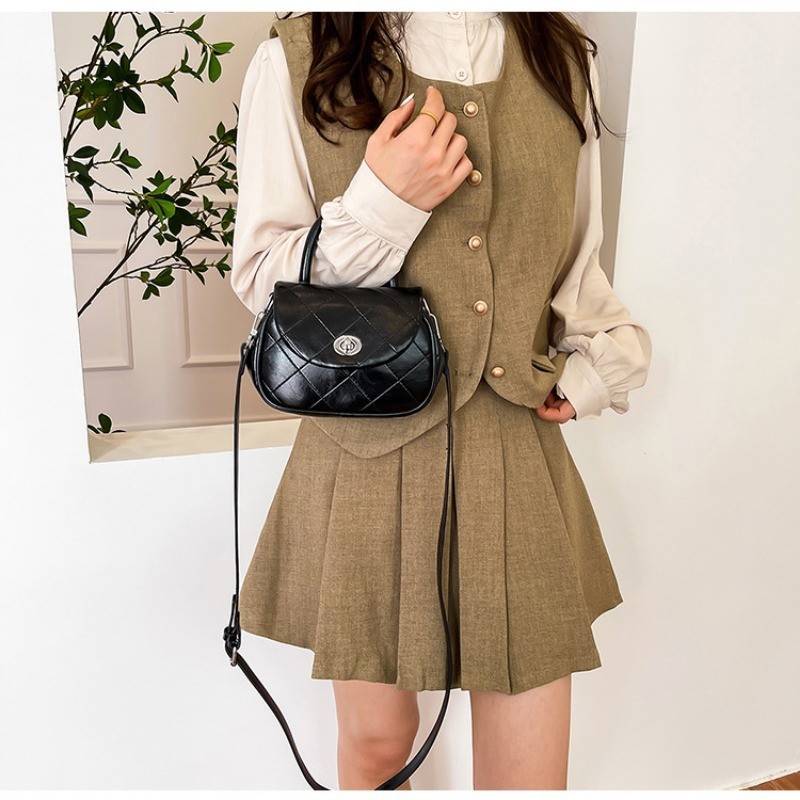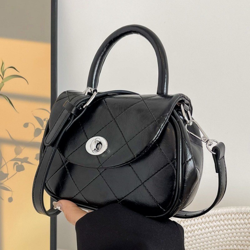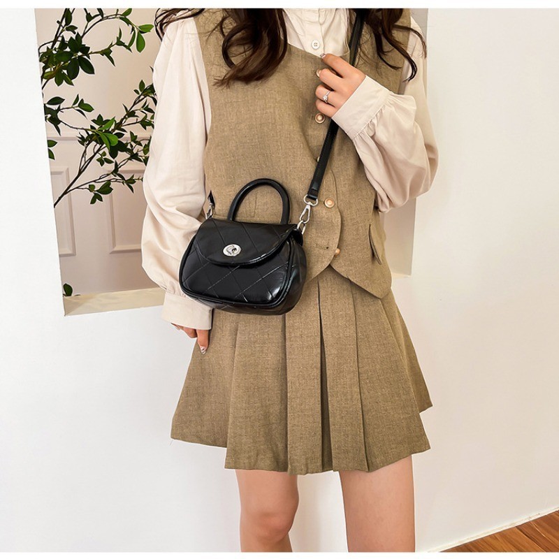 Ielgy Diamond Embroidery Thread Fashionable All-Match Chain Small Square Bag Black Casual Shoulder Messenger Bag
