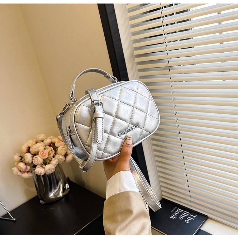 Ielgy Diamond Silver Cross-Body All-Match Western-Style Small Square Bag One-Shoulder Portable Mobile Phone Bag