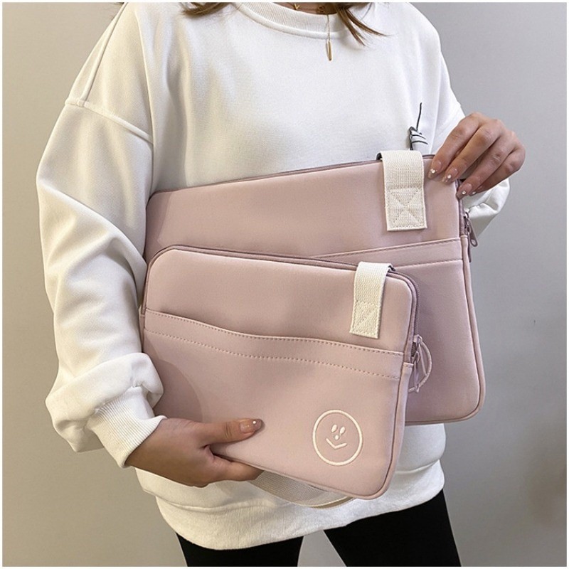 Ielgy Embroidered Smiley Face Shockproof Water-Repellent Liner Bag ipad Computer Protective Case Shoulder Messenger Compu
