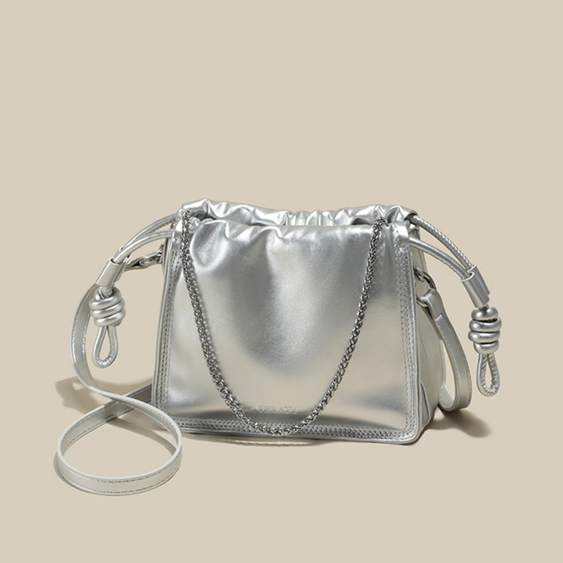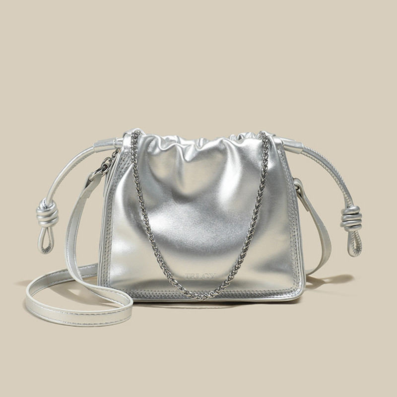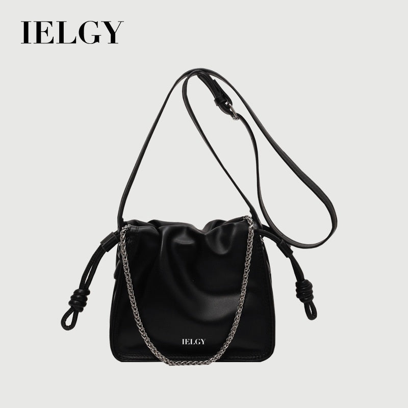 IELGY Exquisite Pleated Crossbody Bag with Adjustable Drawstring