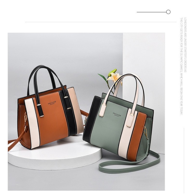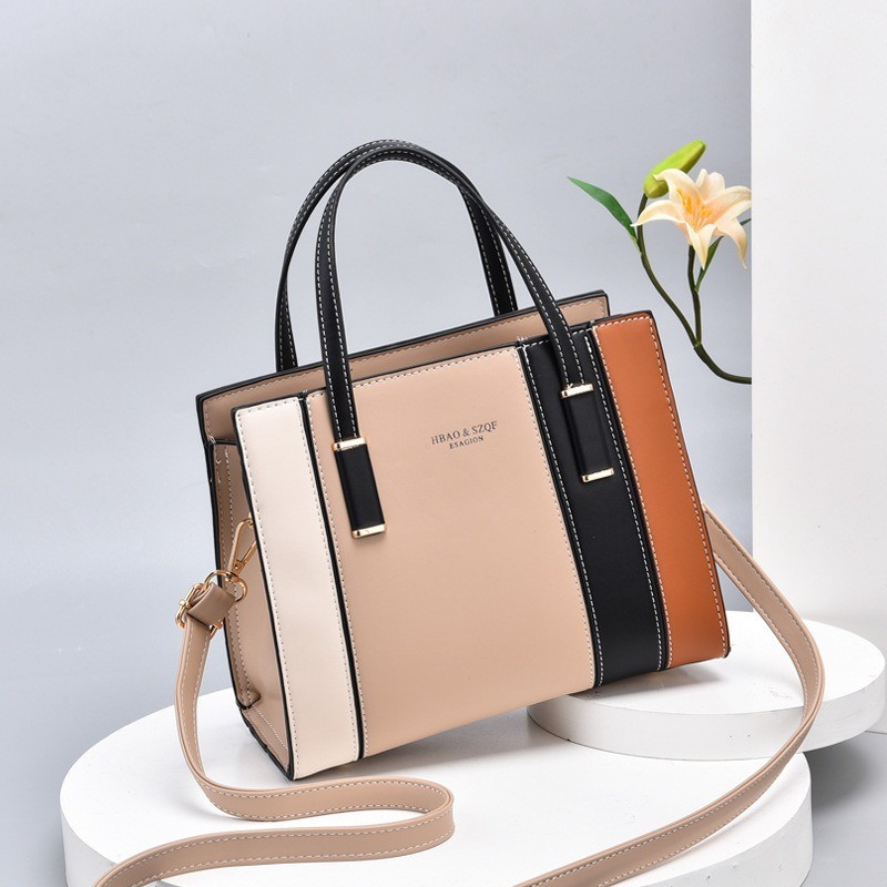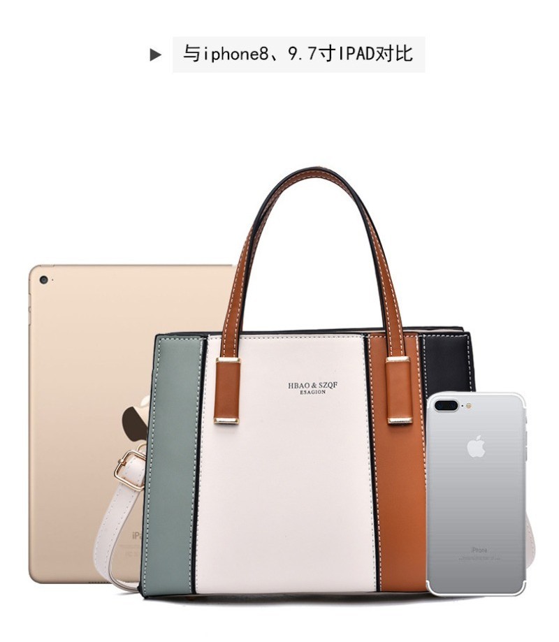 Ielgy Fashion Contrast Color Handbag Large Capacity Ladies Stitching Shoulder Messenger Bag Trendy
