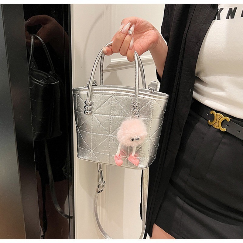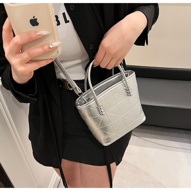 Ielgy Fashion Diamond Bucket Bag All-Match Niche Shoulder Messenger Bag