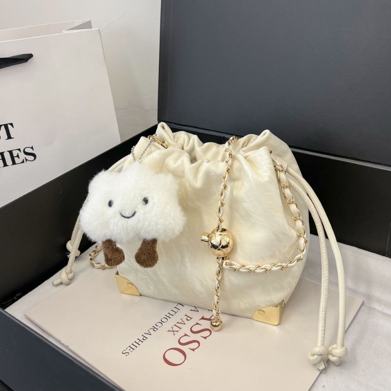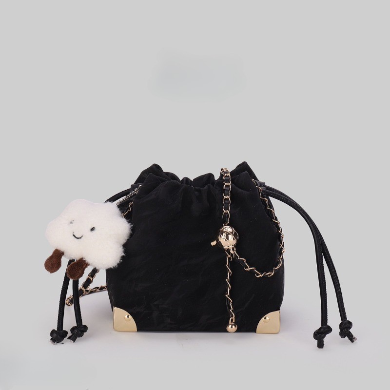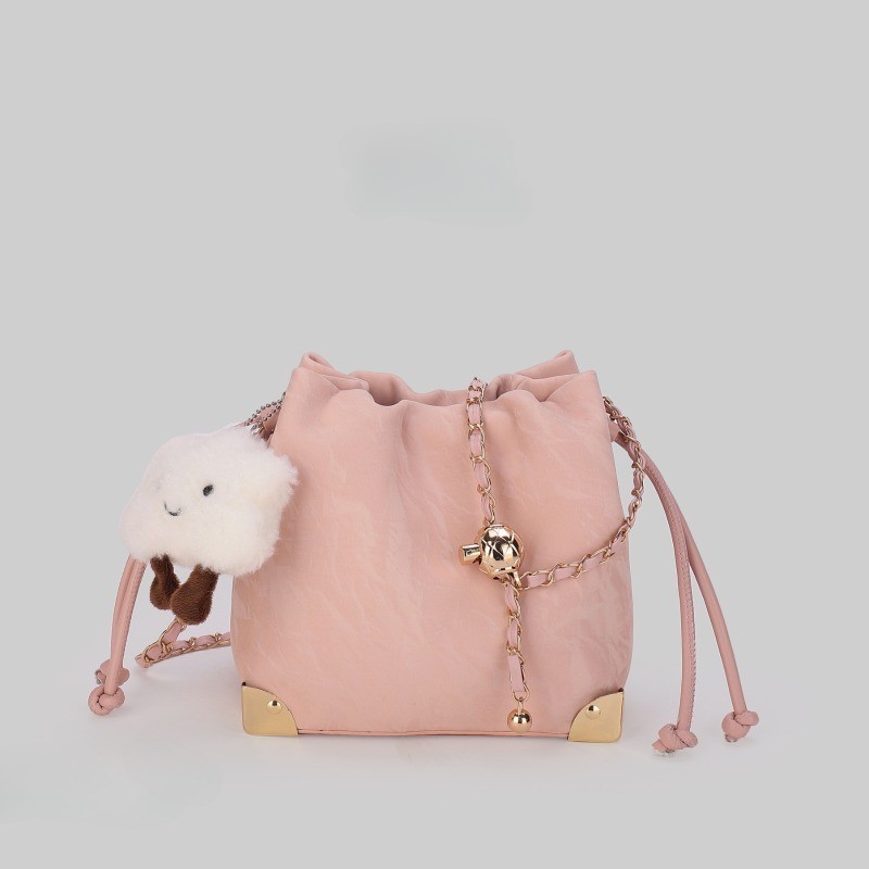 Ielgy Fashion Drawstring All-Match Cross-Body Bucket Bag Pink, White, Black Chain Drawstring Bag