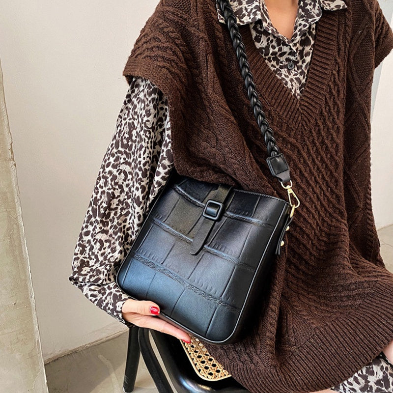 IELGY Fashion Ladies Large-capacity Korean Style Diagonal Bag Soft Leather Belt Buckle