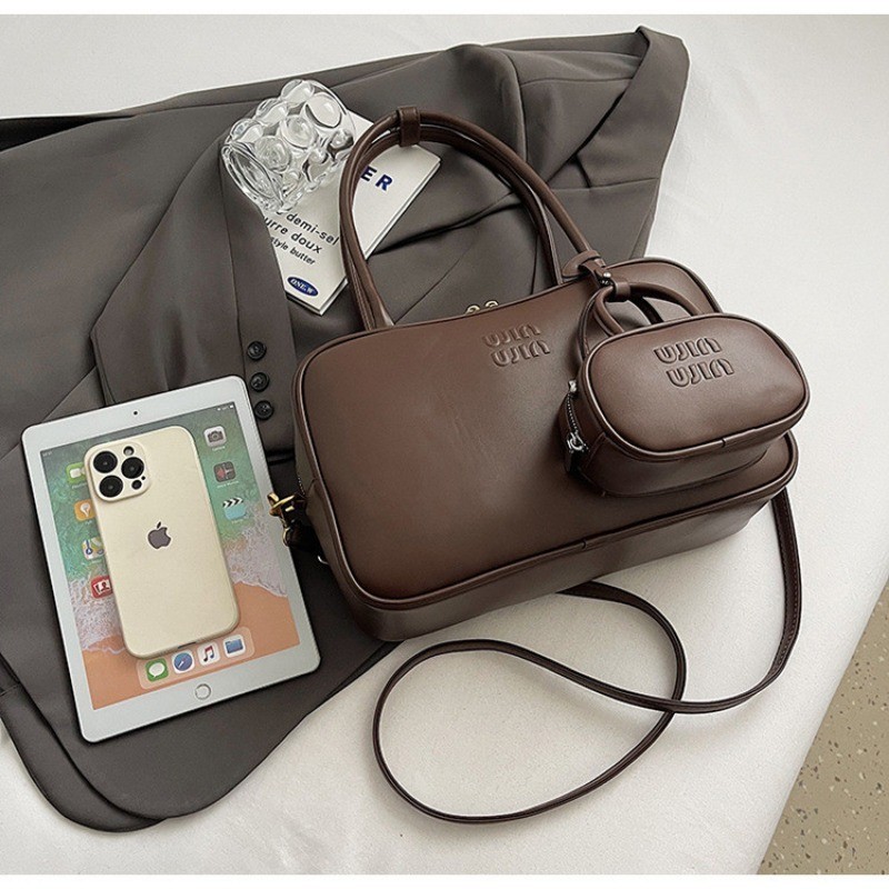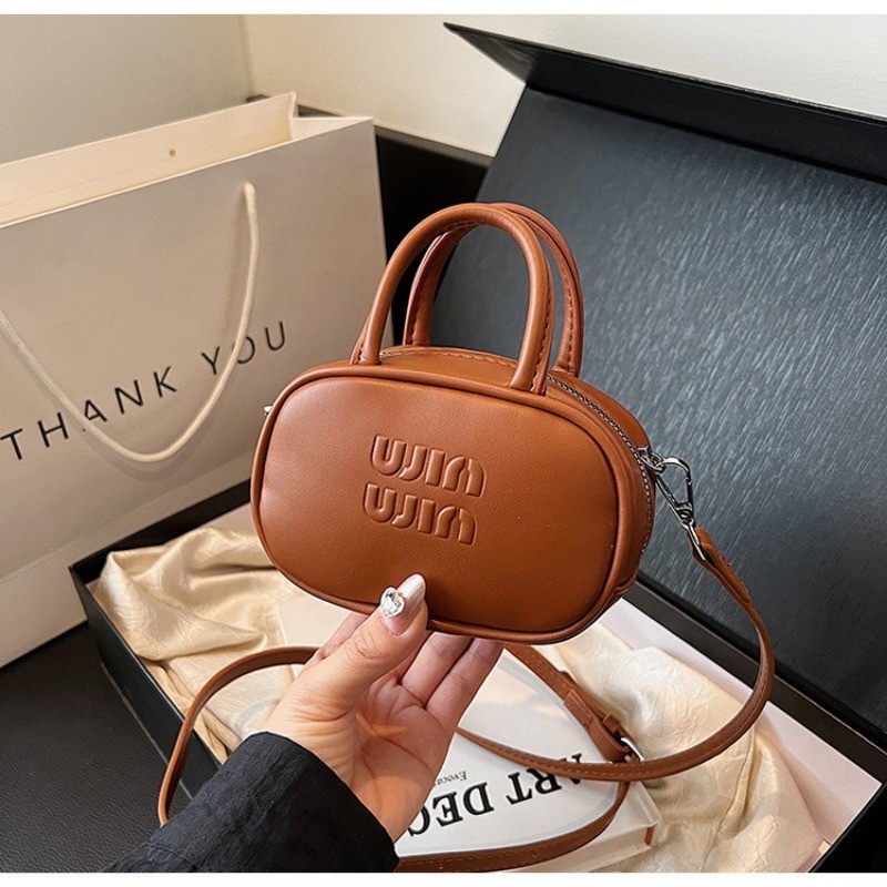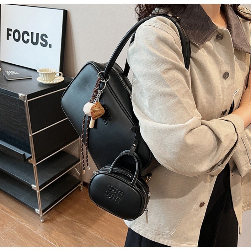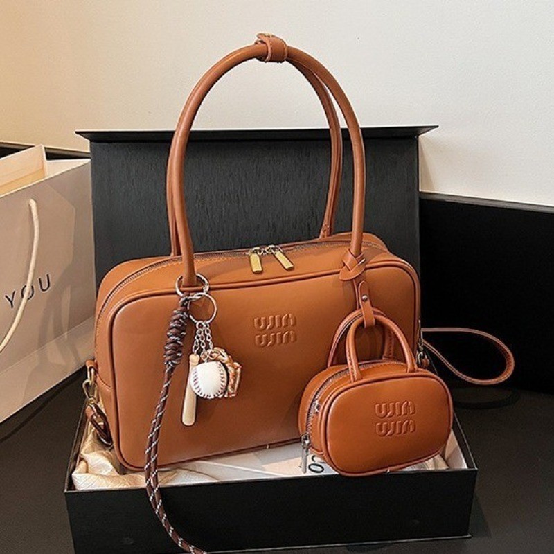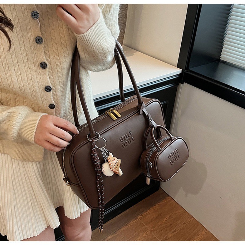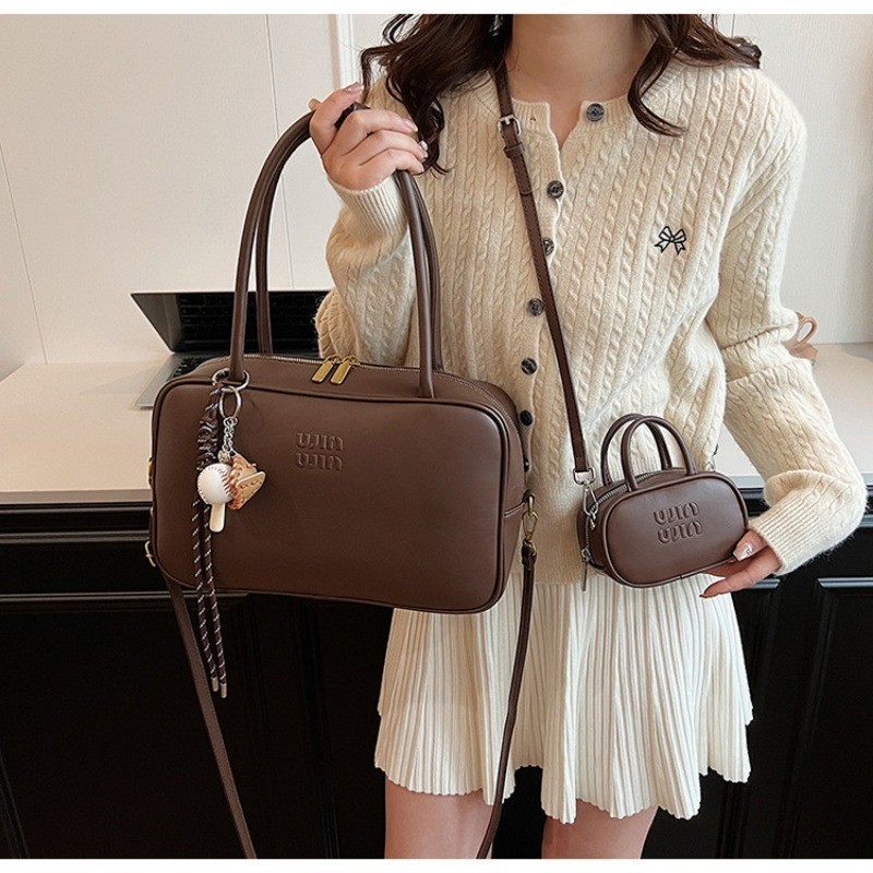 Ielgy Fashion Niche Bowling Briefcase Large Capacity Commuter Handbag One Shoulder Diagonal
