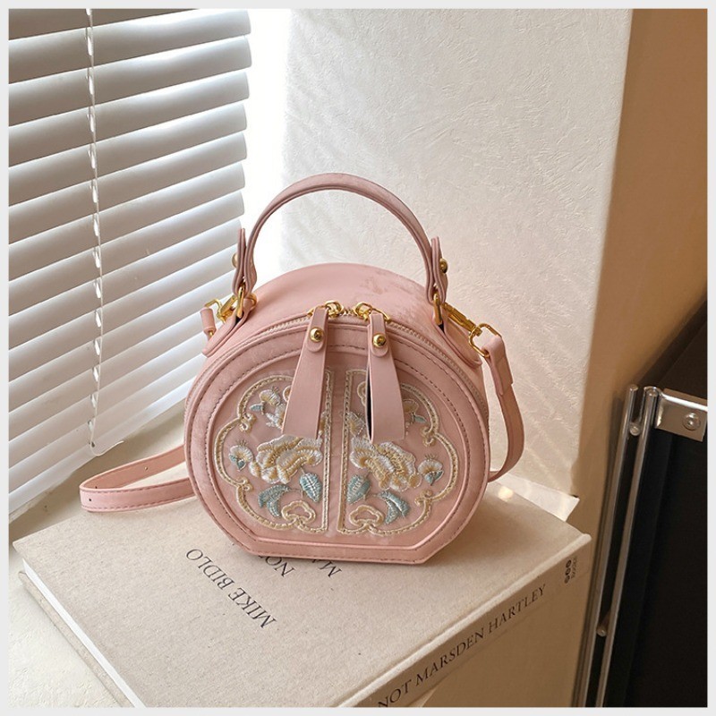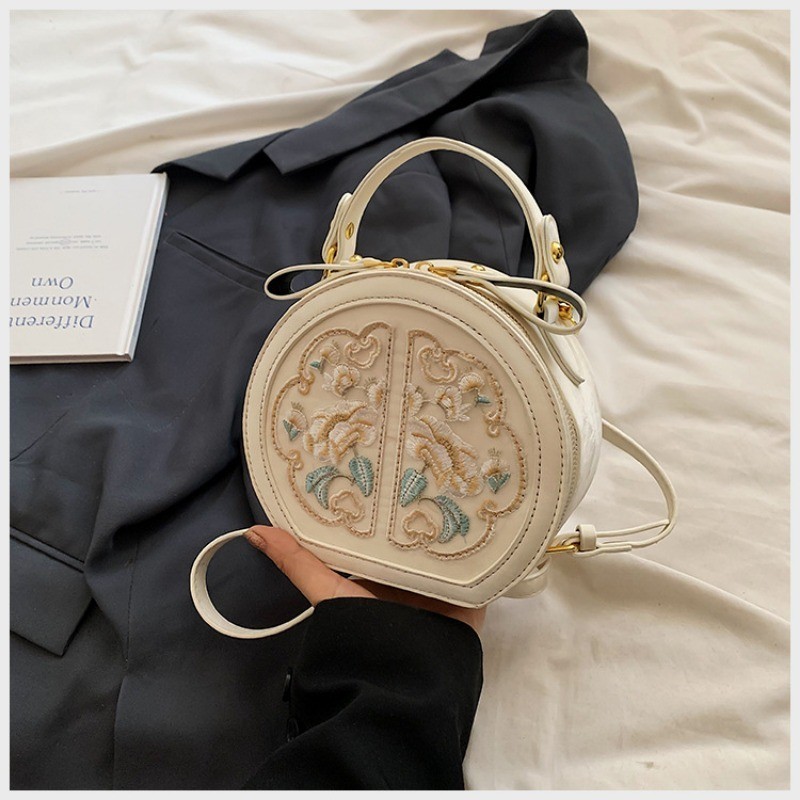 Ielgy Fashion Niche Embroidery Bag New Chinese Style All-Match Cross-Body Portable Small Round Bag