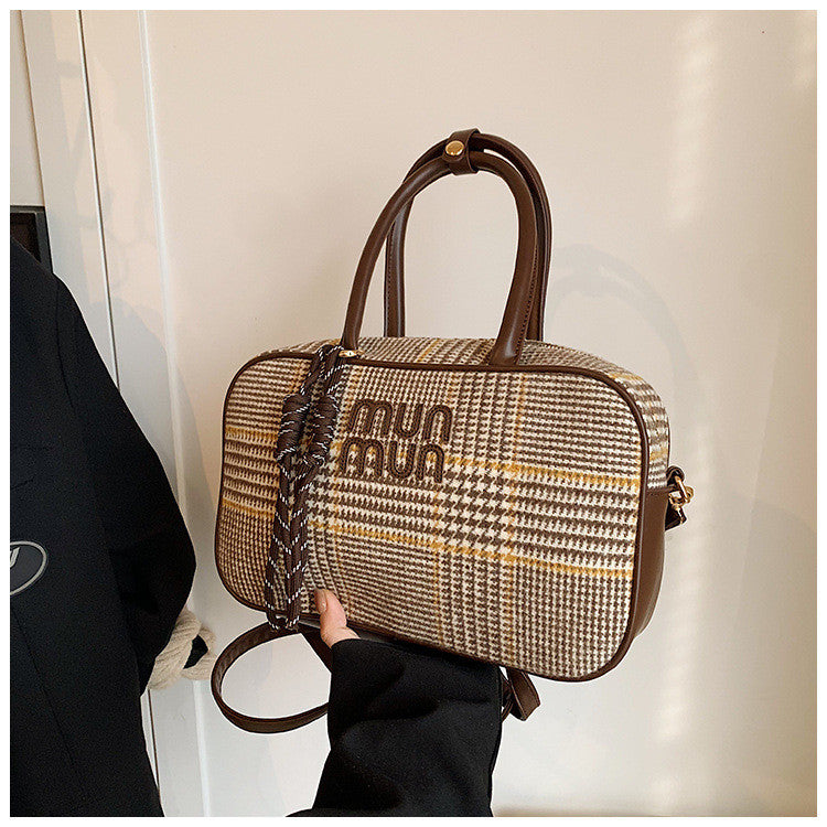 Ielgy Fashion Plaid Handbag Shoulder Crossbody Commuter Boston Pillow Bag