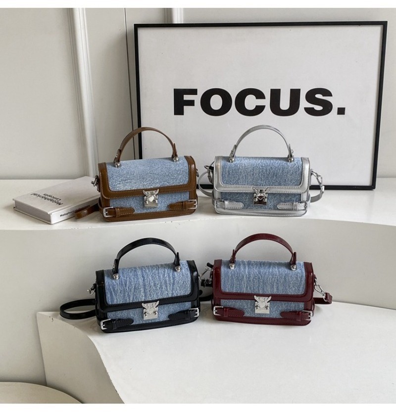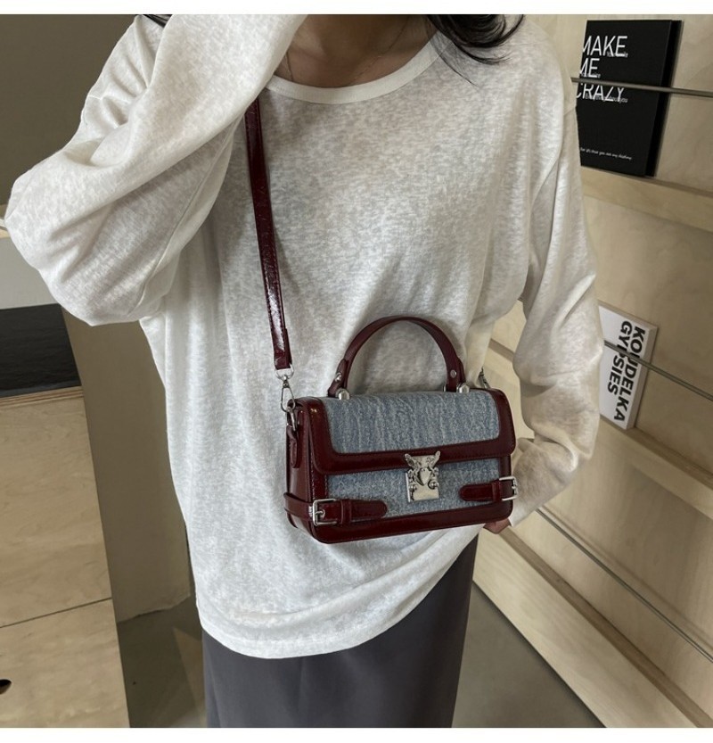 Ielgy Fashion Portable Small Square Bag Contrast Color Simple All-Match One-Shoulder Niche Trendy Cross-Body Bag
