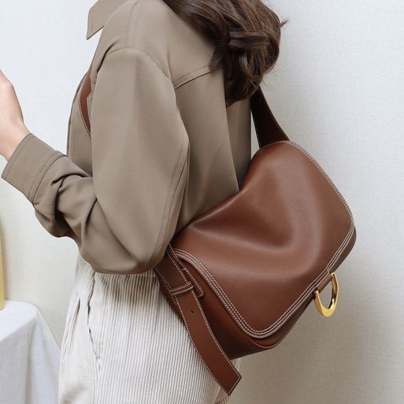 Ielgy Fashion Soft Leather Messenger Bag Large Capacity Shoulder Underarm Female Bag