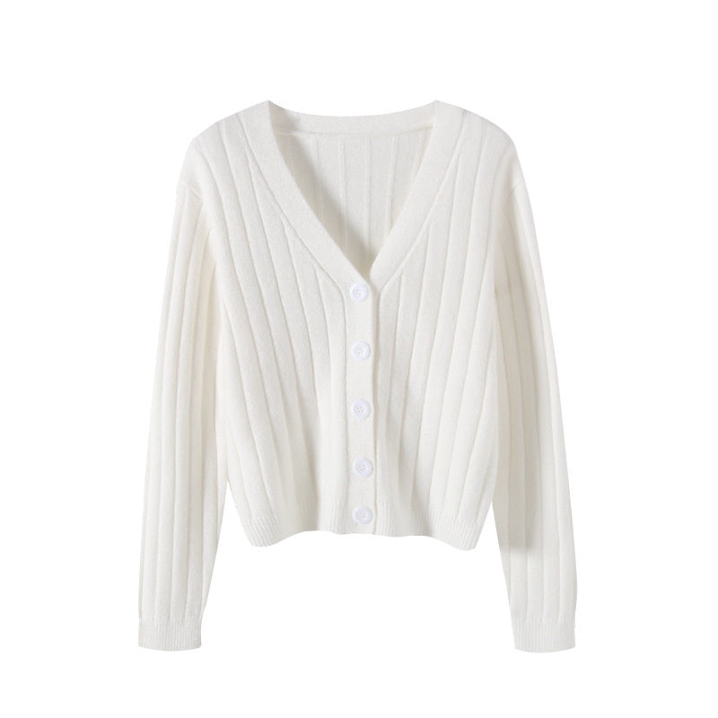 IELGY fashion solid color button outer loose long-sleeved v-neck knitted cardigan women