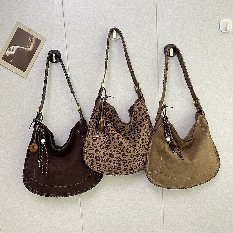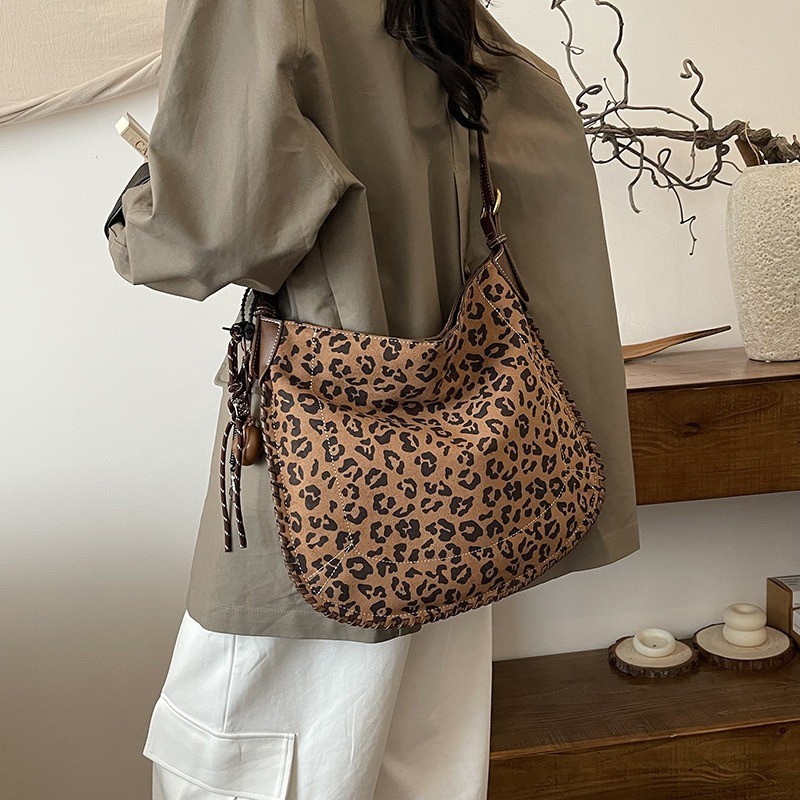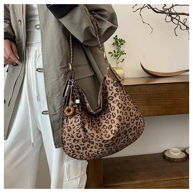 Ielgy Fashion Trendy Leopard Print Tote Bag Retro Casual One-Shoulder Large-Capacity Commuter Underarm Bag