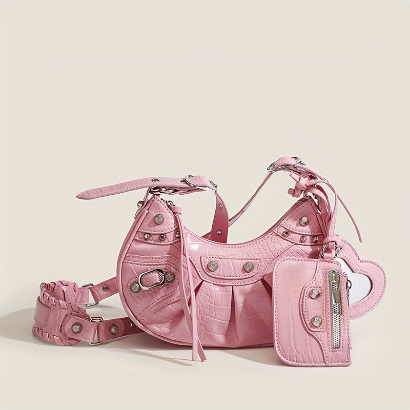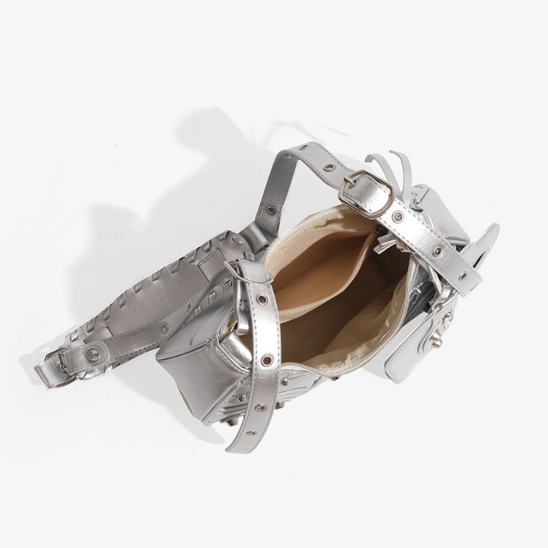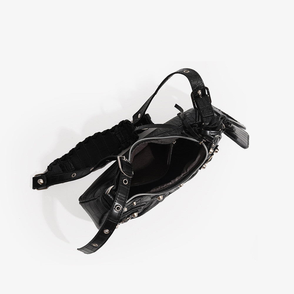 Ielgy Fashion Trendy Motorcycle Bag Underarm Bag Rivet Tassel High-End Feeling Pleated Shoulder Messenger Female Bag