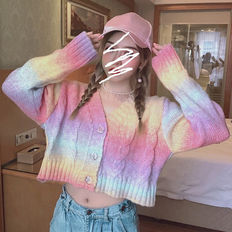 IELGY Fashion V-neck sweater women's personality tie-dye loose and versatile