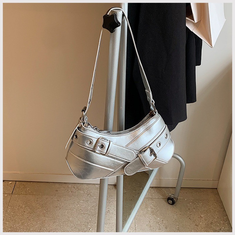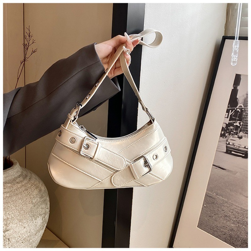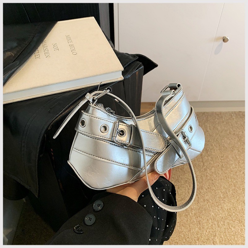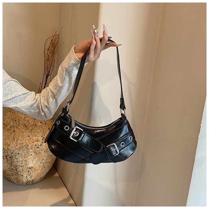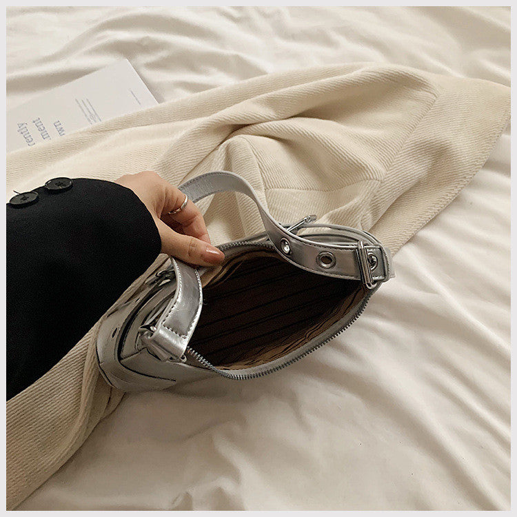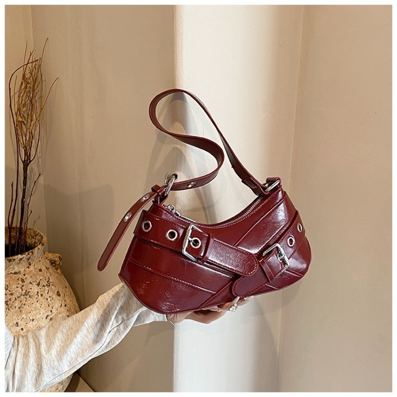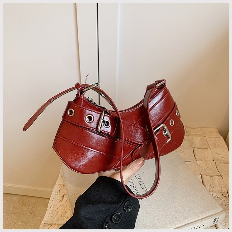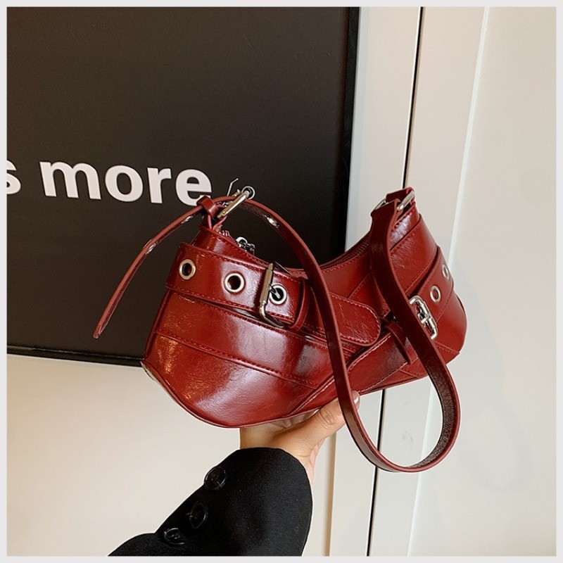 Ielgy Fashionable High-End Red Underarm Bag Ladies Korean Version Trendy All-Match Motorcycle Bag Niche Simple One-Shoulder