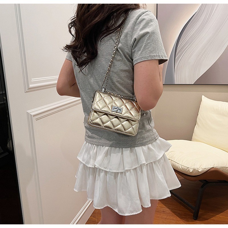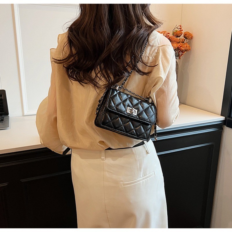 Ielgy Fashionable High-End Rhombus Shoulder Crossbody Chain Small Square Bag