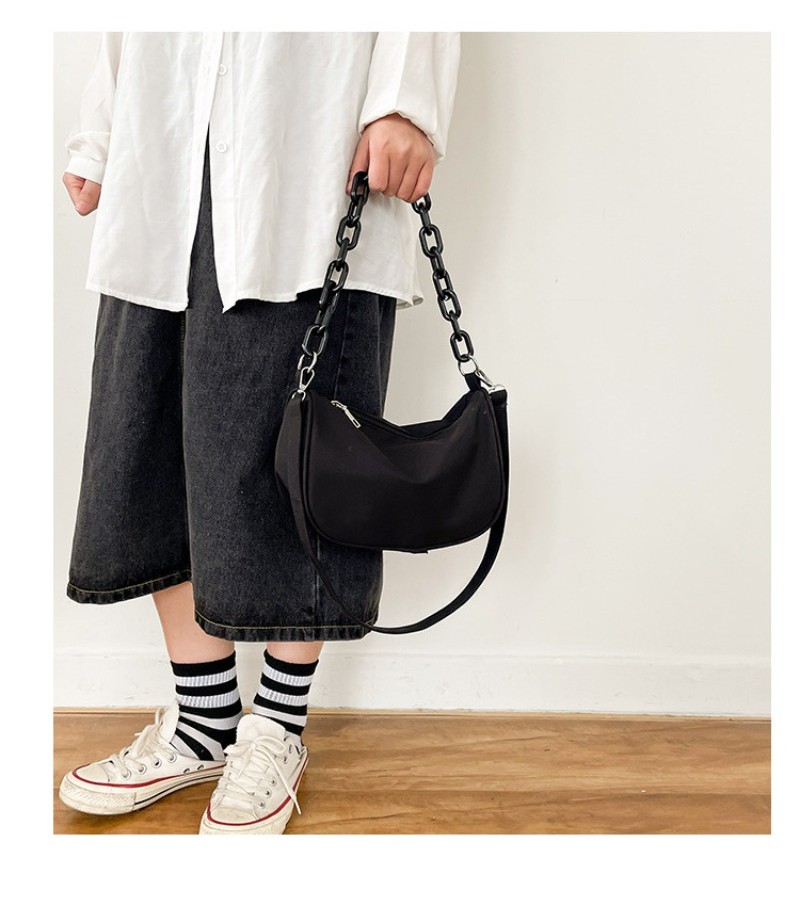 Ielgy Fashionable Unique Acrylic Chain Underarm Bag Japanese Simple All-Match Casual Nylon Messenger Bag