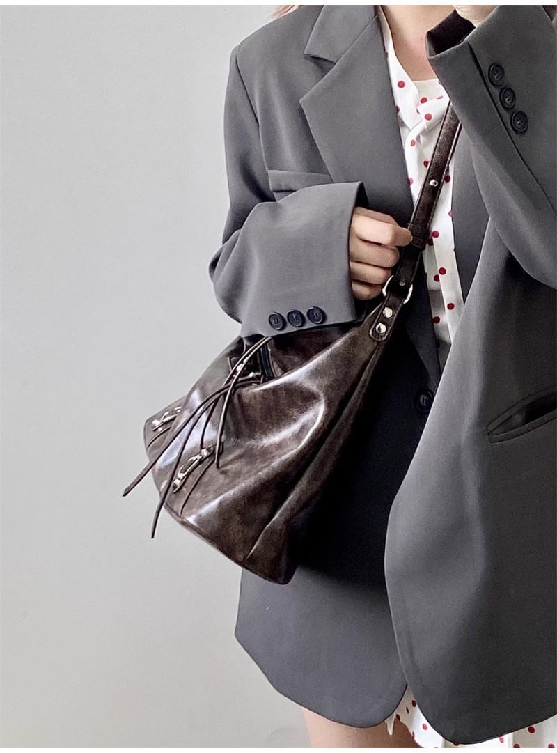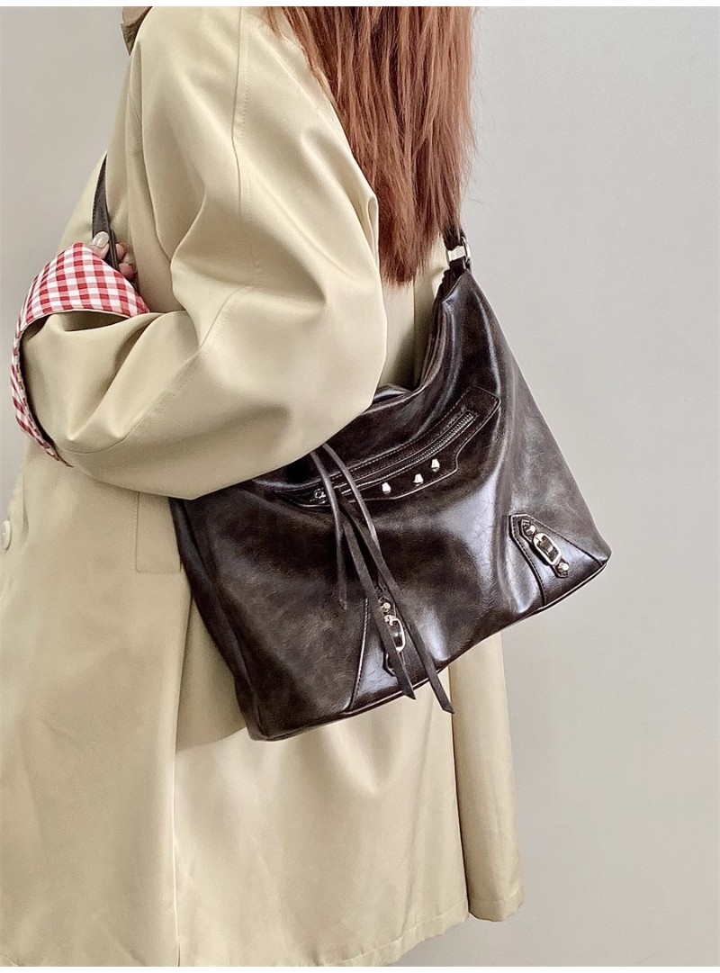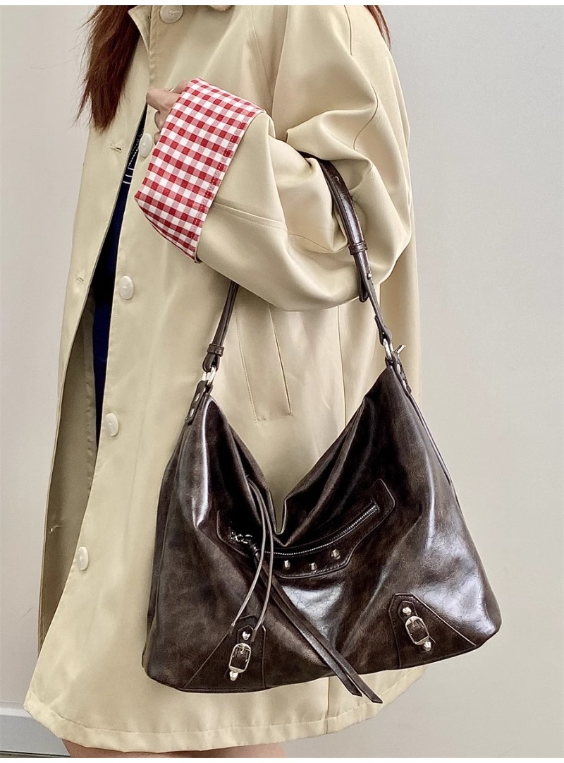 Ielgy Female Bag Autumn Winter Retro Merad Large-Capacity One-Shoulder Messenger