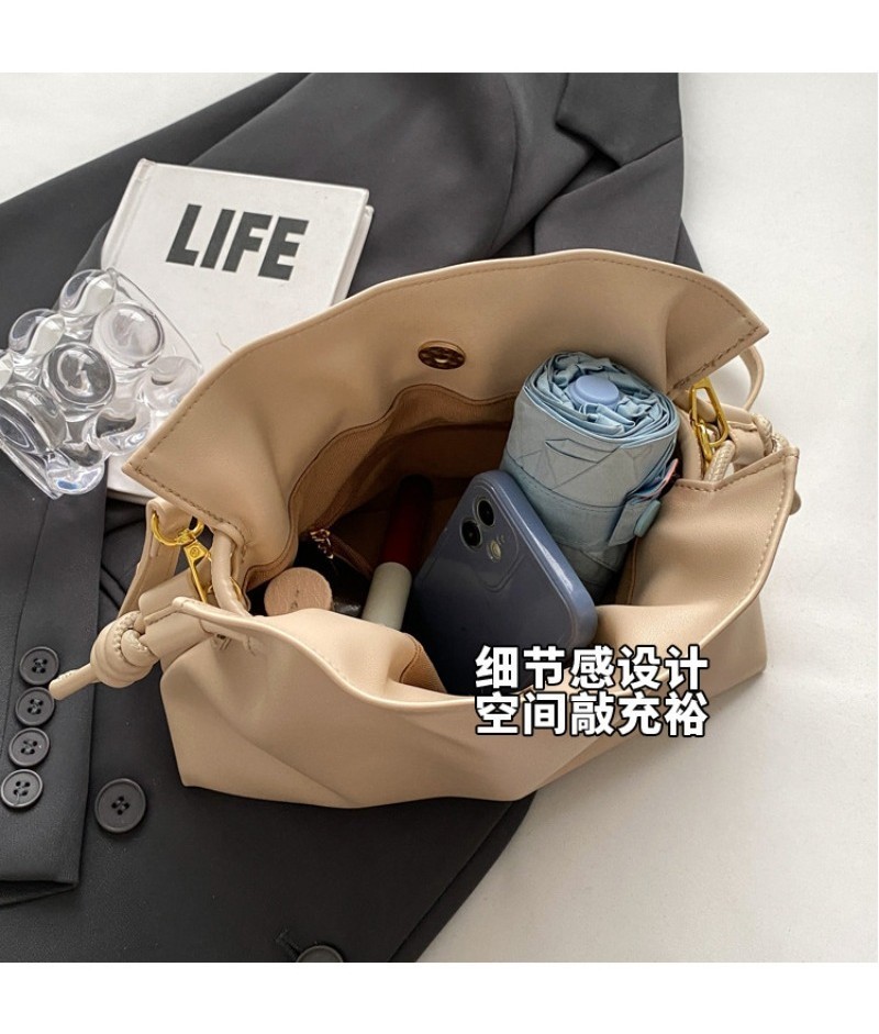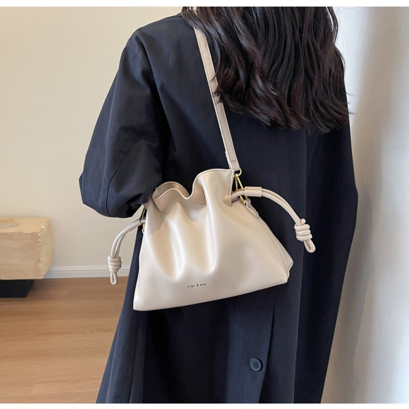 Ielgy Female Bag Fashion Simple Drawstring Lucky Bag Bag One Shoulder Crossbody Large Capacity Bucket Bag Hand-Carrying Pleated Bag