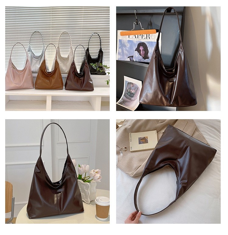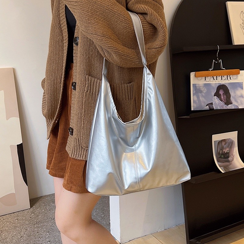 Ielgy Female Bag Simple Shoulder Tote Bag Solid Color Commuter Large Capacity Silver Underarm Fashion Bag